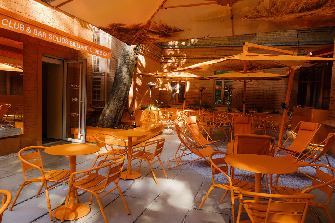Бич-клаб от Hermès в знаменитом оранже? Лучше! В апельсиновый тотал-лук нарядил свой двор (роскошь для Петроградской!) бильярд-бар Анри Бера и его команды: шайбы-столы, шезлонги, зонтики. С манговым роял беллини и креветками с карри монохром — еще тотальнее. Также обещают слэш-коктейли на ледяной крошке, фруктовые шербеты и 1 июля шумно транслировать финал Лиги чемпионов.