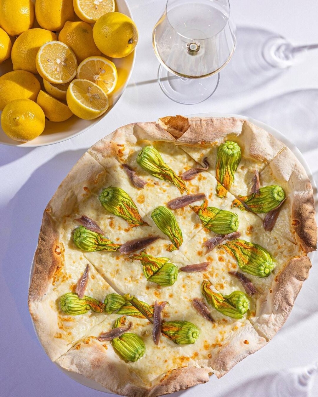 Это красиво! Маст-хэв выходных: пицца на тонком хрустящем тесте с моцареллой, анчоусами и сезонными цветами цукини в ресторане VOX.