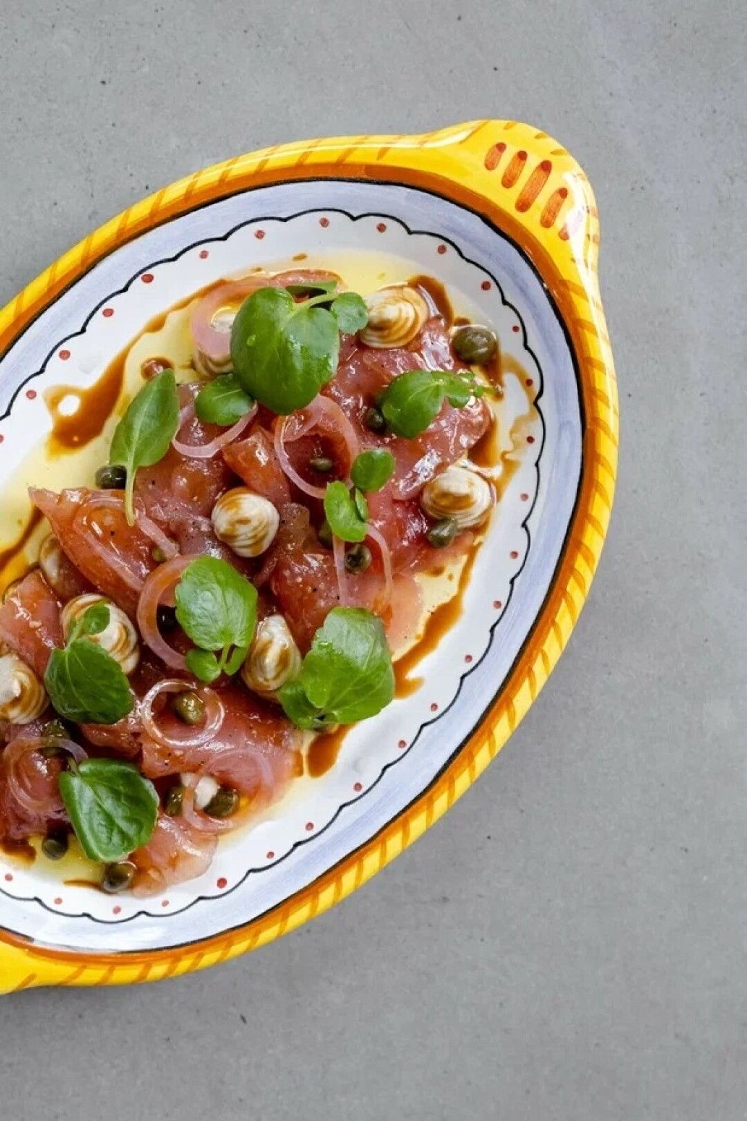 Шеф-повар ресторана Антон Счетчиков в новом меню замиксовал Италию и Грецию: готовит традиционную мухаммару, пиде с зеленью и домашней фетой, а также два вида карпаччо — из дальневосточного гребешка с муссом из свежего огурца или из трех видов томатом с тапенадой из оливок и ялтинского лука. Но наш главный краш — ньокки аль бурро с астраханской черной икрой.