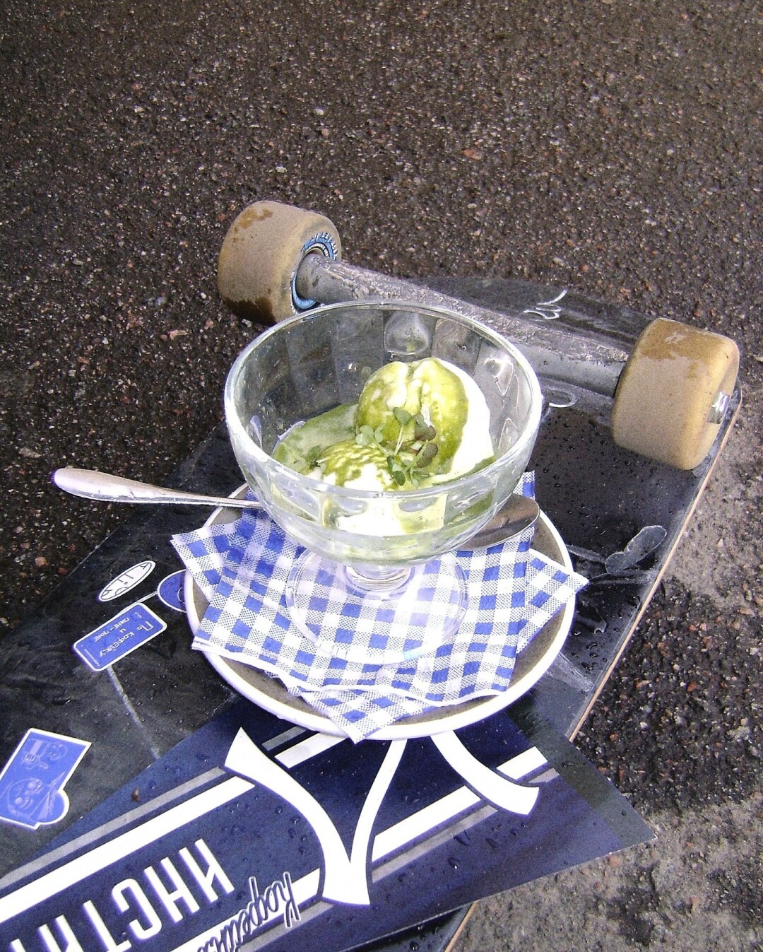 Готовят сливочное джелато с эспрессо на собственном зерне «Больше кофе», либо зеленый напиток — с матчей ohmytea.
