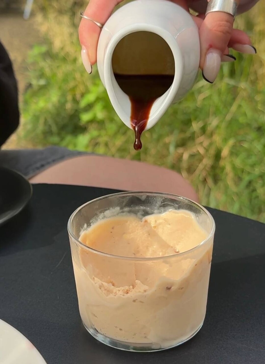 Тотальное лето в чашке! Твист на классику — матча-аффогато с базиликовым пломбиром.