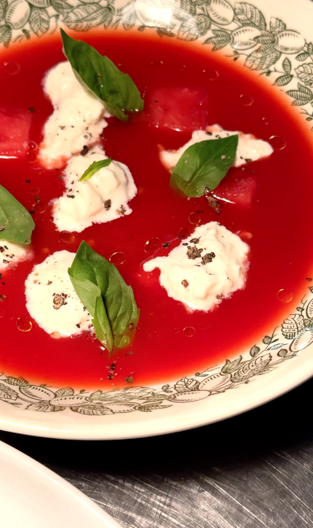Идеологи ферментации в Петербурге из ресторана Meal в своем итальянском бистро Mill предлагают холодный суп из итальянских томатов Casa Marrazzo DOP и свежего арбуза и сливочной страчателлой. Еще дают летнюю закуску: томаты с арбузом и эстрагоном.