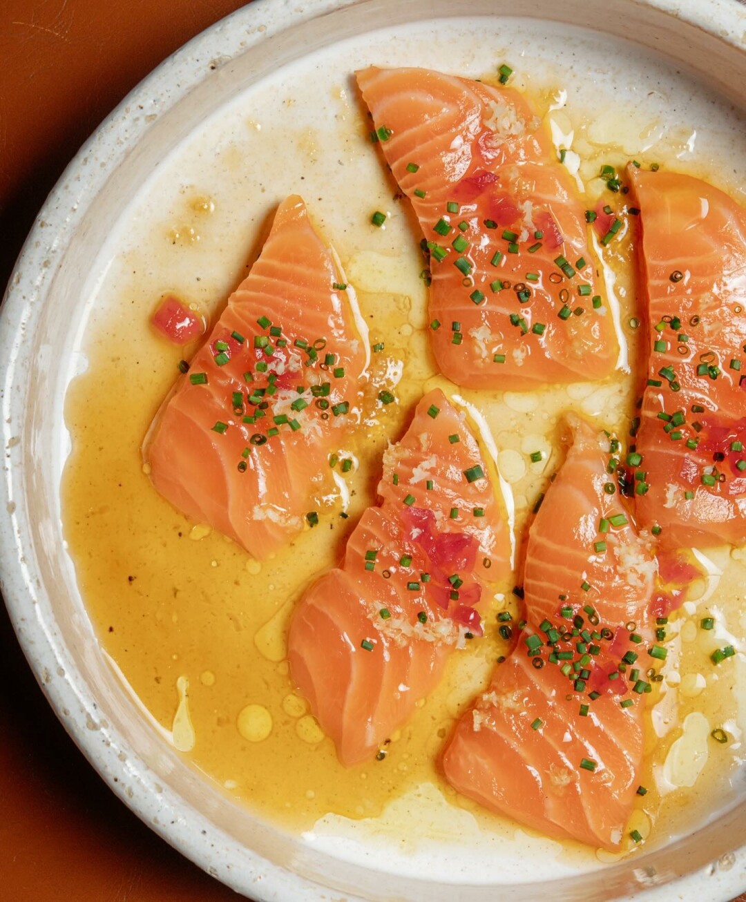 В субботу, 5 октября московский проект Share bistro во главе с шеф-поваром Евгением Осокиным с бранчем приедет в Петербург. Евгений как коренной петербуржец и большой поклонник эклектики и необычных сочетаний предложит начать закуской из фуа-гра, инжира конфи и домашнего тартина из пекарни «Мечтателей», следом — крудо из лосося с хреном и соусом понзу и маринованые перцы рамиро с соусом тоннато кимчи и хлопьями подкопченой рикотты.