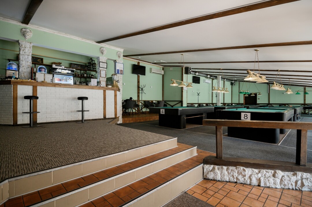 Народное место, бильярдный клуб и бар на втором этаже дома с банкетными залами недавно отметили юбилей — 25 лет! Популярный спот для настоящих фанатов бильярда: русский бильярд 10 футов — 1 стол, русский бильярд 12 футов — 5 столов, пул — 8 столов. На баре можно заказать пиццу, закуски и сидр.