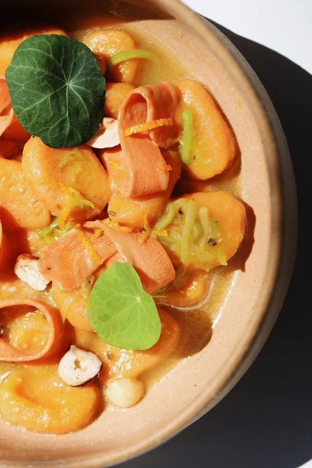 Несладкий сырник с лососем и ньокки из батата — где еще найти такой завтрак? В ЗОЖ-бистро полностью обновили меню. Идем на суп из корнеплодов с чипсами из дайкона, ленивые вареники с грибами и трюфельным маслом и буррату, которую подают с бобами, томатами и зеленым маслом.