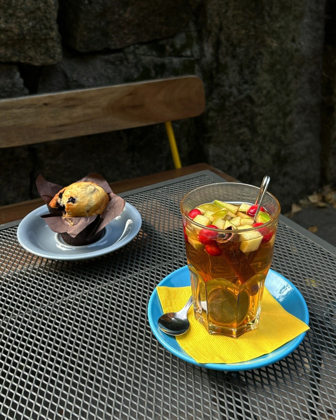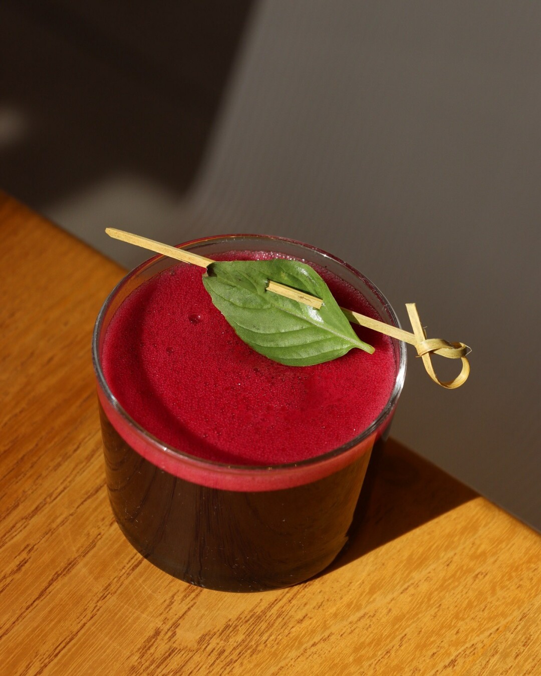 В последнем обновлении микрокофейни во дворе-колодце: ягодный пунш с безалкогольным вермутом, биттер, соус табаско и апельсиновые мармеладные мишки, а еще фильтр-шот с маслом и безалкогольным виски. Помимо этого они скрестили овощи и шоколад, а именно темный бельгийский какао-шот, свекольный сок и сок черной смородины.