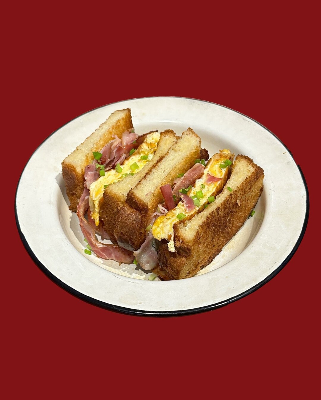 «Б» for buterbrod! В кафе на задворках Ленфильма сэндвичи — специалитет. Выбираем любой, но тот, что с беконом и яйцом навсегда останется в вашем сердце. Уверенный омлет, интенсивный бекон, зеленый лук — и вы великолепны.
