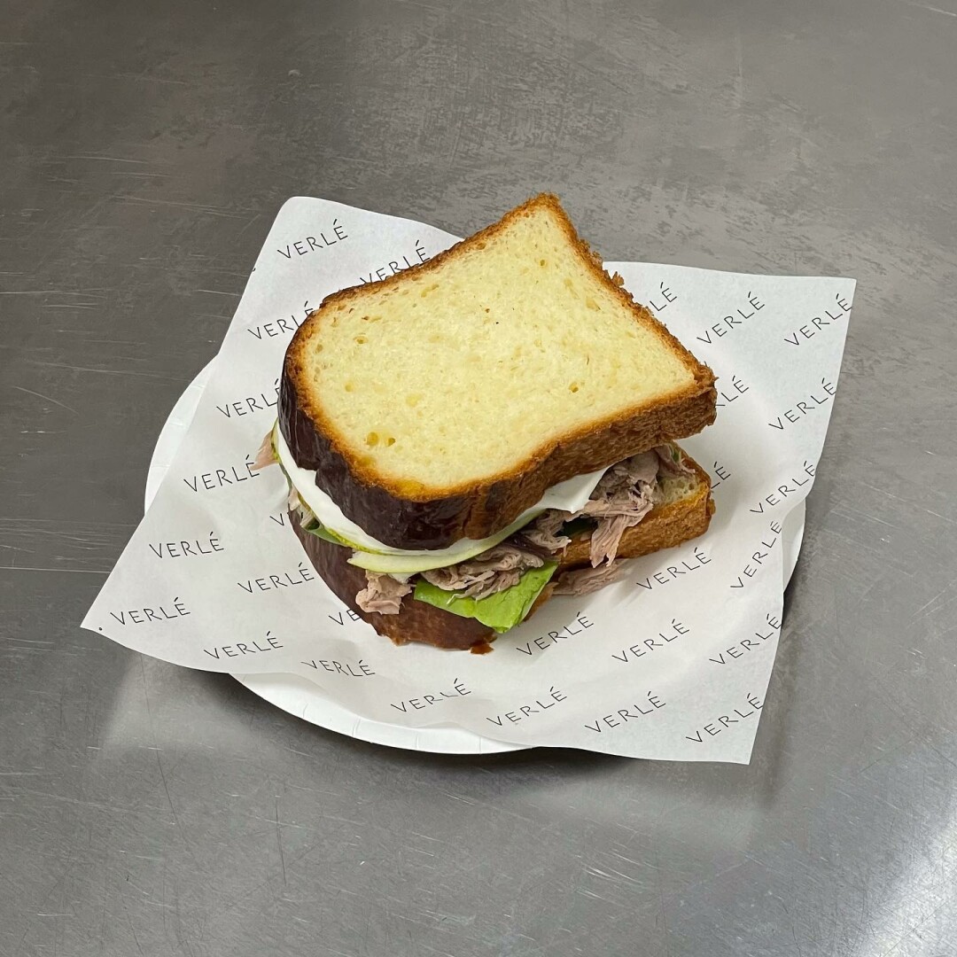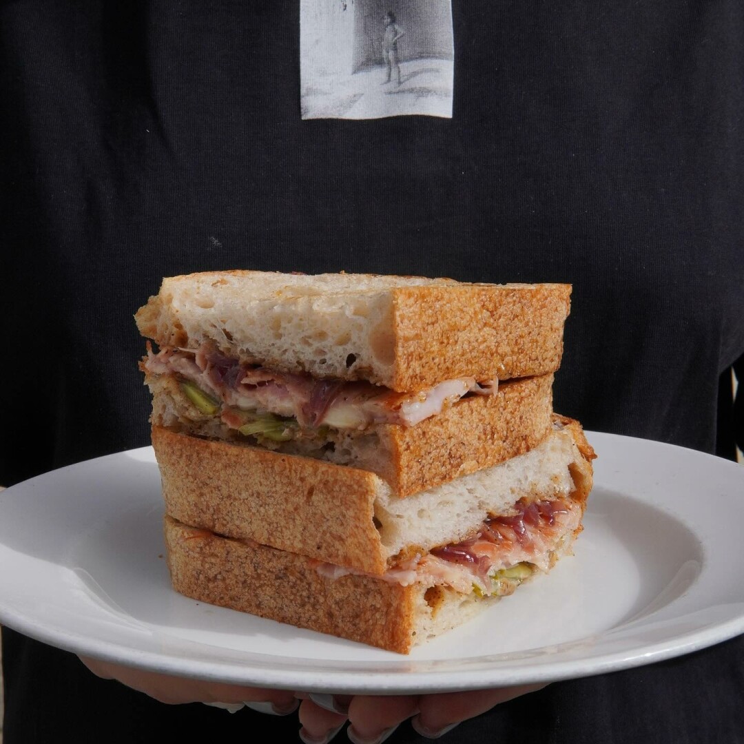 Очень красивый сэндвич готовят из японского хлеба хоккайдо (который пекут в ресторане Flori из той же ресторанной группы «Комитет»). Внутри песто, страчателла и итальянская мортаделла.