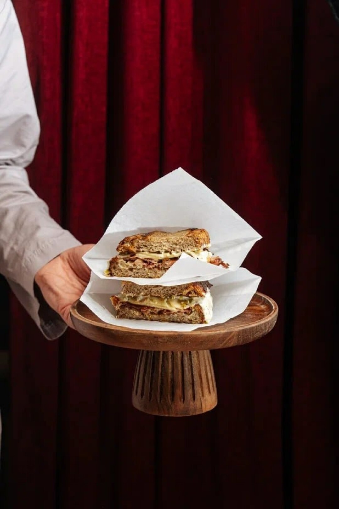 На завтрак шеф-повар Мария Дементьева (каждый день с 10:00 до 14:00) готовит самый соблазнительный сэндвич: обжаренный до хрустящей корочки тартин, сыр чеддер, карамелизированный лук, сладкая горчица и пармезан.