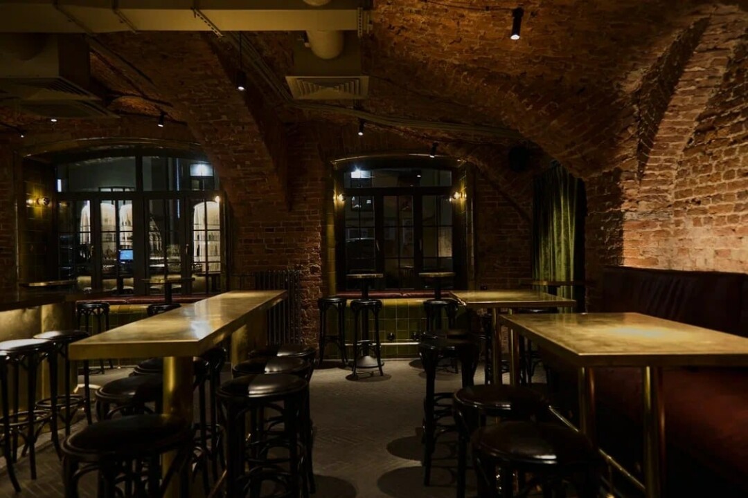 Big news! Бар Orthodox, переехав со дворов улицы Рубинштейна во дворы улицы Восстания, прибавил в квадратных метрах, постелил асфальт для будущей мини-террасы и написал портреты Ахматовой, Маяковского и Чехова в арке по соседству. Так что, во-первых, это красиво: плитка из чугуна, клинкерный кирпич, обожженное дерево, натуральная кожа, ретрорукомойник из латуни и зеркало в резной раме XIX века, привезенное с Вологодчины. Во-вторых, в меню — чуть ли не полное собрание произведений русских классиков, зарифмованное с отечественными спиритами: коктейли «Вишневый сад» на вишневом самогоне с шоколадным биттером, «Щелкунчик» с водкой, настоянной на грече, или «Аптека» из ромашковой настойки и ликера из горечавки.