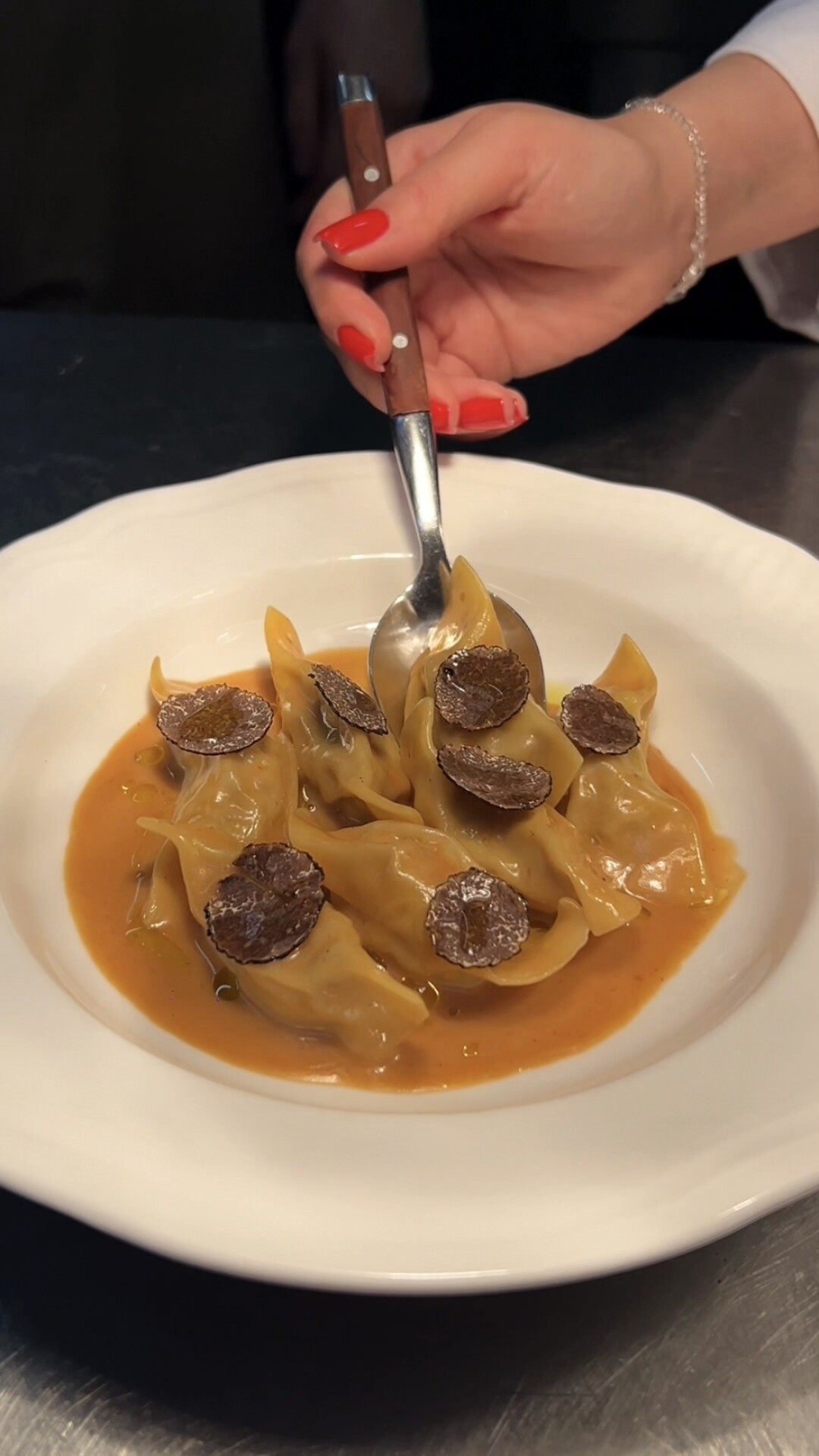 Ребята из «Прошуттерии» построили мучной цех и встретили свой новый год вместе с тортеллини (помещенными в крепкий куриный бульон), казончелли («конфетки» с томленым языком с свежим черным трюфелем), лазаньей (с маринарой и сыром монтазио). На горячее и жизнеутверждающее — стуфато Сан Джованнезе — говяжья шея, которая томилась всю ночь со сливочным маслом и розмарином) с картофельным пюре. База!