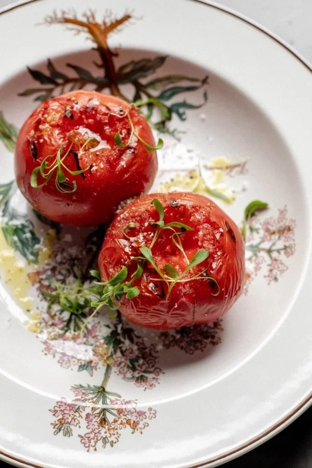 Только посмотрите на эти узбекские томаты на гриле, будто сошедшие с сюрреалистичных портретов итальянца Джузеппе Арчимбольдо. Составить правильную композицию еще помогут жареные артишоки, маринара и спагетти — алио-олио-пеперончино или аль помодоро.