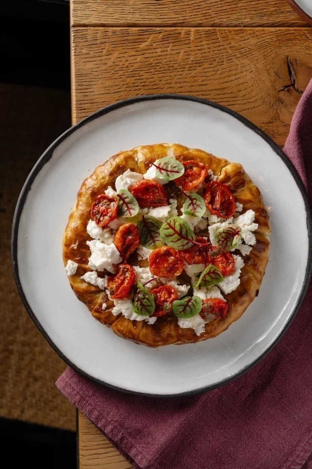 В качестве аперитива берем хрустящий баклажан на подушке из соуса наполи с домашним песто, клетчатку добираем большим зеленым салатом, а углеводное окно закрываем пиццей с овощным рагу из баклажанов, сельдерея, томатов и фундучной аджикой.