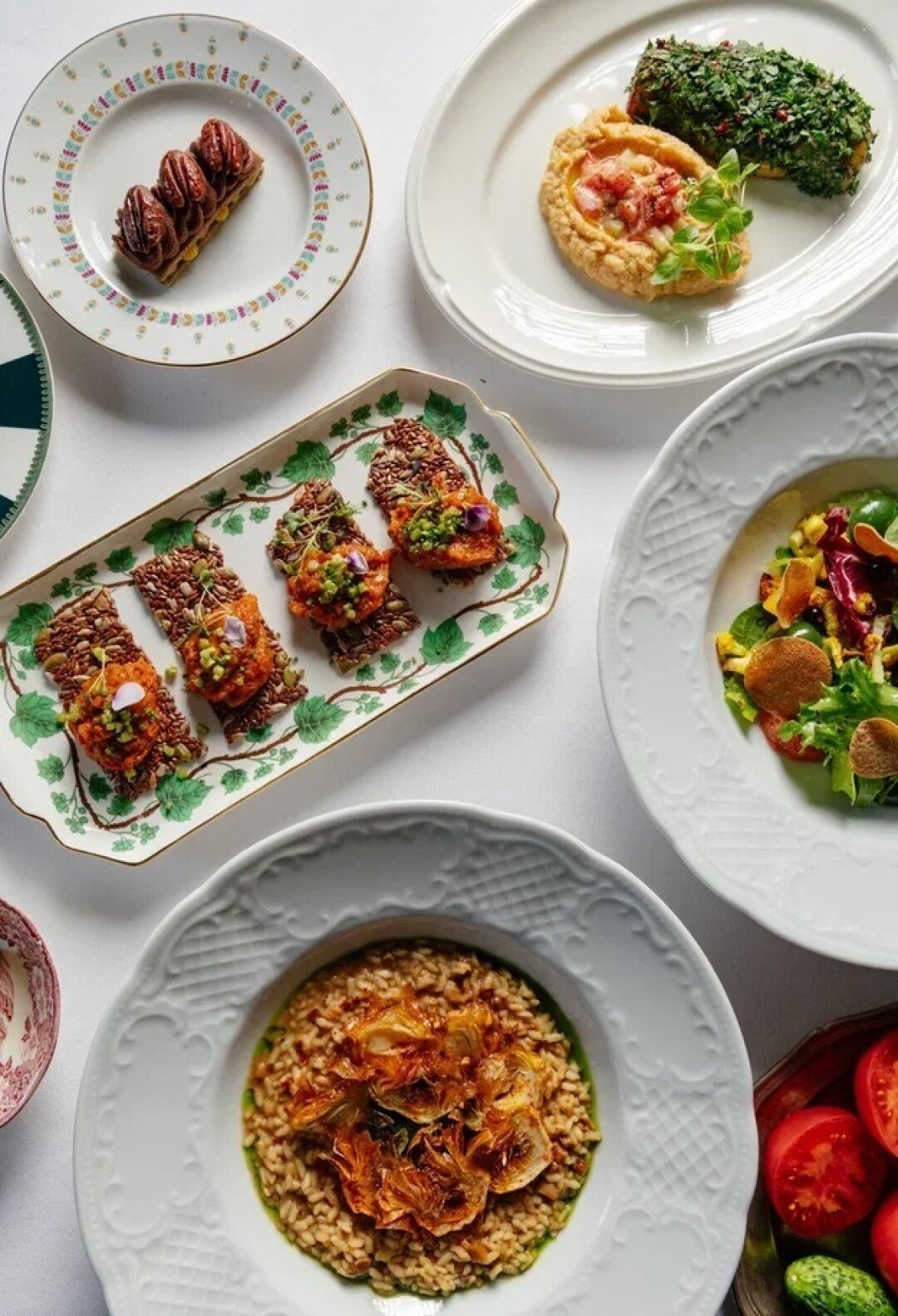 Когда еще пробовать домашние льняные чипсы с овощной икрой, ризотто с белыми грибами и жареными артишоками, а также халву с прослойкой из апельсинового конфитюра, шоколадного ганаша и карамельным пеканом?