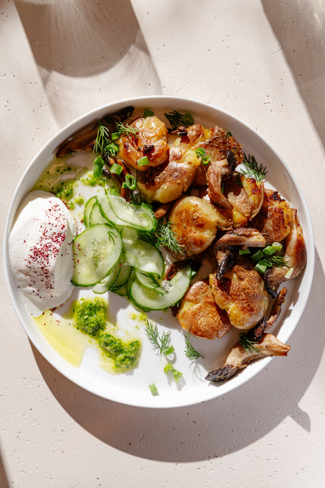 Найдена самая зомбирующая вариация нашего любимого блюда — картошечки с грибами. Молодой картофель обжаривается до золотистой корочки, дополняется вешенками, свежим зеленым луком и подается с постной сметаной и ароматным салатом из битых огурцов. На десерт — натуральная сладость: конфета из чернослива, кураги и меда, покрытая дробленым арахисом.