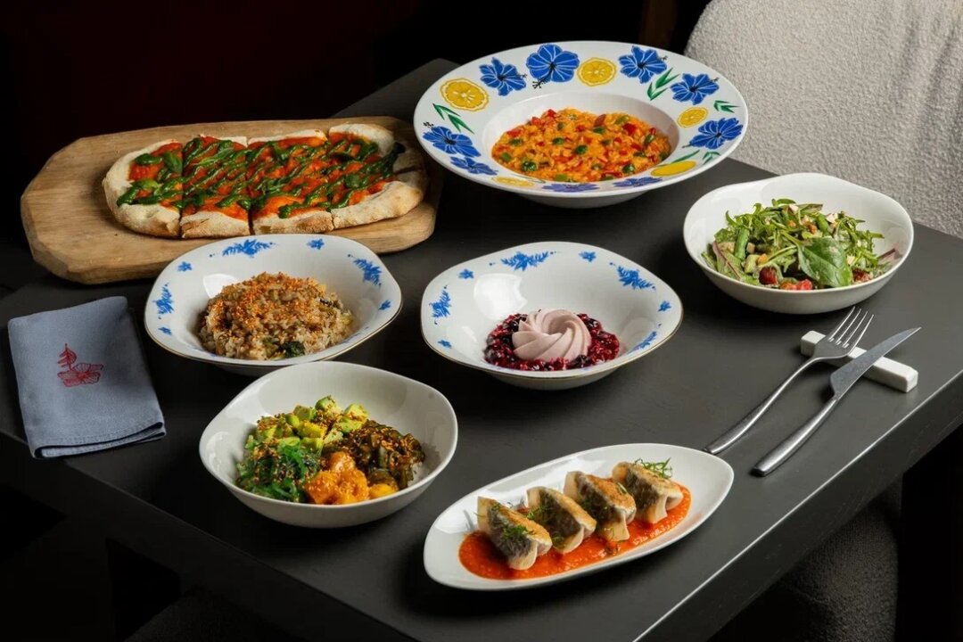 На берегу Большой Невки вдохновлялись Средиземноморьем. Спагетти болоньезе делают из пасты без содержания белка с соевым мясом в томатном соусе; на закуску – жареный айсберг с соусом из кешью и тофу или хрустящий баклажан с постным йогуртом и томатами, а суп сделают на основе томатов с печёными перцами и оливками.