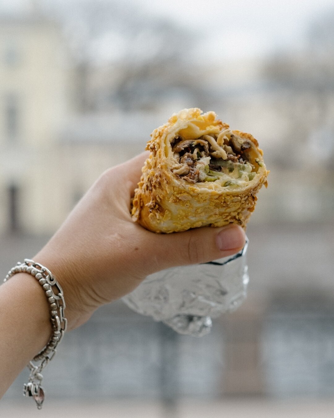Истинно петербургский спешл для майских прогулок — сет шаверм от шефа Виталия Паппа. Хрустящие врапы с сырной корочкой представлены в трех вариантах: утка, клюква и пармезан; томленые говяжьи щечками и грибы; креветки, моцарелла и песто.