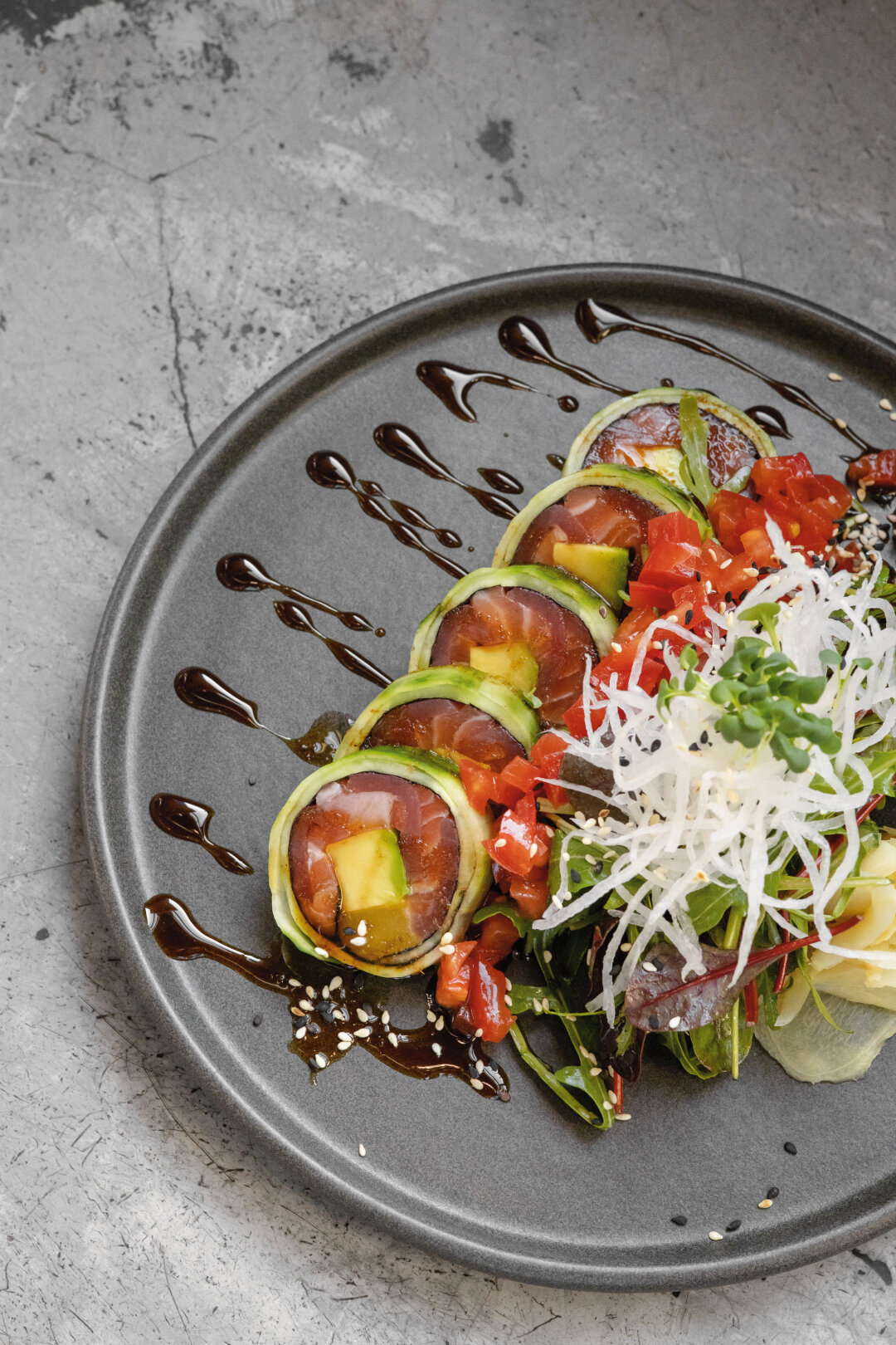 Панки от японской кухни своим УТП сделали многоярусные роллы (это когда рис с начинкой сначала обнимает пухлый слайс тунца, затем идет ворох зеленого салата, а сверху белоснежной шапкой ложится дайкон и микрозелень) и заработали надежную фанбазу — не только в Петербурге, но и в Москве, а также в Тбилиси.