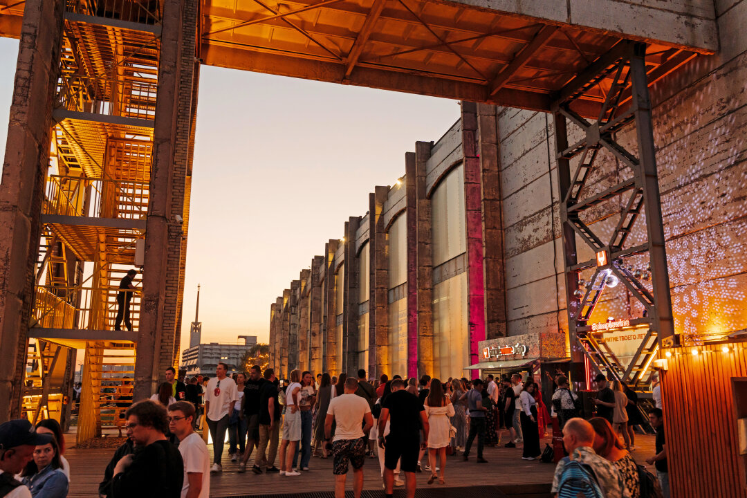 Барная линия «Севкабель Порта»—наш ответ руинным барам Будапешта — разместилась в бывшем корпусе ситценабивной фабрики, c видом на Финский залив и вантовый мост. К крышесносным закатам и ощущению, что завтра никогда не наступит, добавьте нон-стопвечеринки и кухни со всего мира (13 концепций!). Курсируем между хумусом в Leila, мидиями в карри из «Мидийных личностей» и плескавицей в «Балкане». В фаворитах редакции—сёю рамен в Takadaya Кадзу Кидзимы и розовый сидр из Ontap.