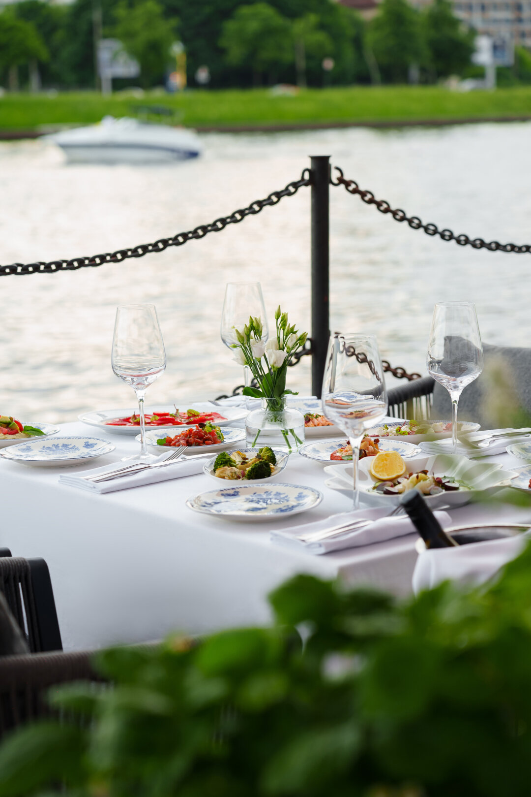 В соревнованиях по террасному спорту рыбный ресторан от ZL Group взял бы если не гран-при, то почетное первое место: где еще можно пришвартоваться на ужин прямо на катере? Любуемся акваторией Малой Невки и идем на абордаж аквариума с ультрасвежими лобстерами, ежами, вонголе и гребешком сен-жак в красивой веероподобной раковине. Поморский борщ с кефалью, пельмени из сазана, чебуреки с крабом и сибас в глине (внимание, вау-подача!), и без шабли в бокале никуда!
