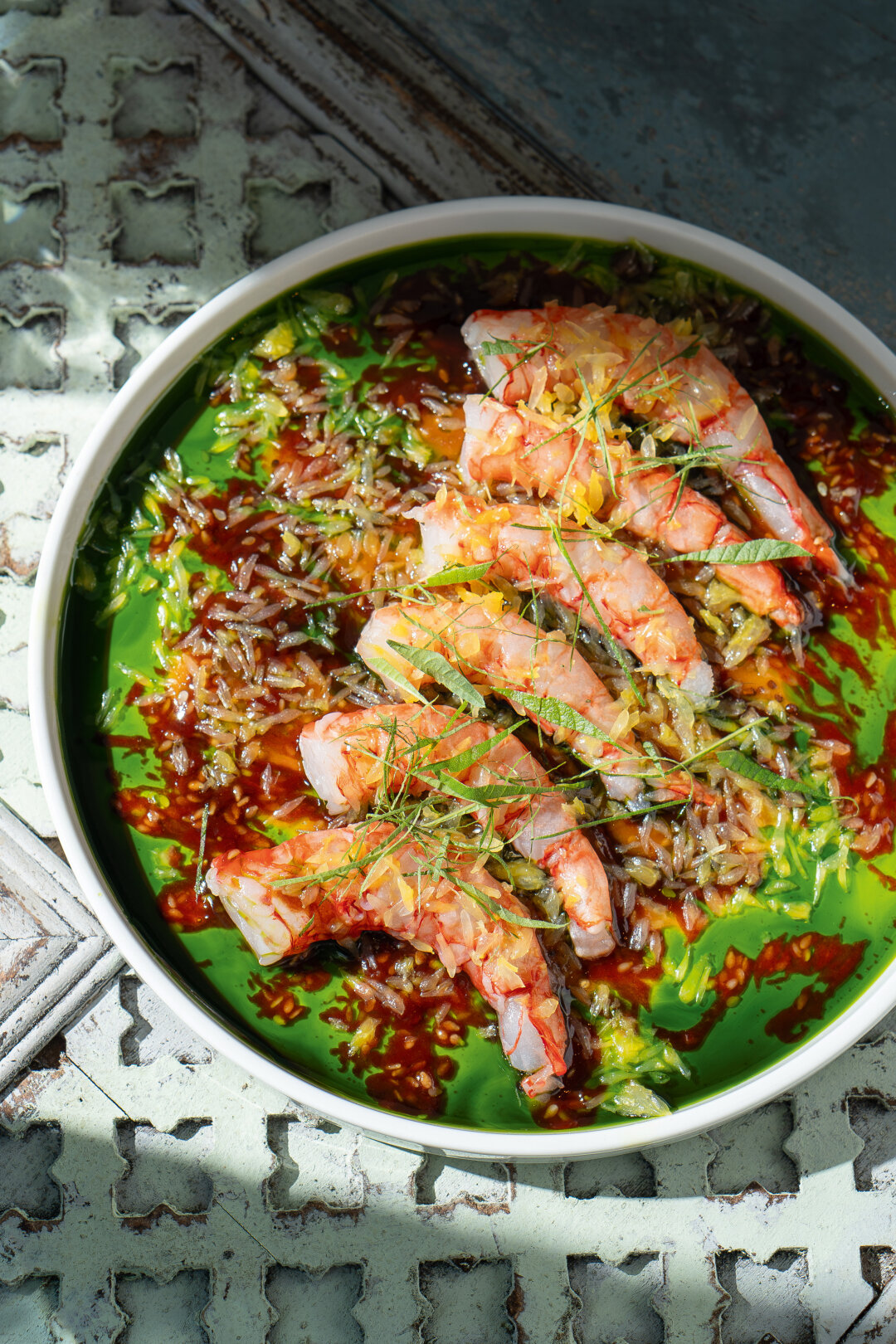 Масштаб — второе имя средиземноморского ресторана Александра Шавлиашвили. С исполинской террасы-сада на тысячу квадратных метров открывается панорама all inclusive — КнязьВладимирский собор, «Лахта Центр», а в перспективе еще и здание Верховного суда и Театр Эйфмана. Тут же колосятся сады с душицей, малиной и яблонями, на кухне — цветок королевского артишока, а в raw-баре (собственный импорт!) прохлаждаются устрицы жилардо, гребешки и красные сицилийские креветки.