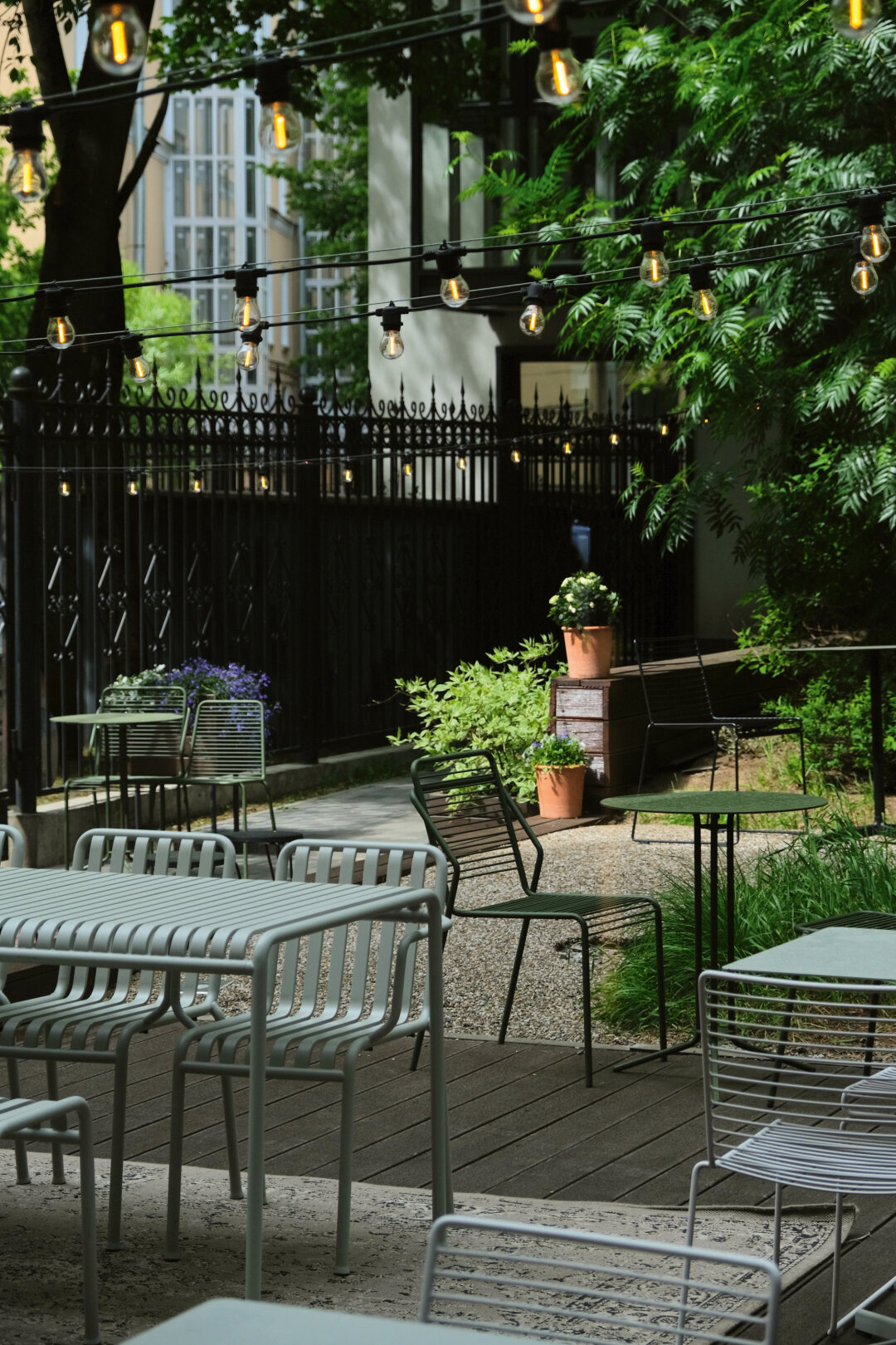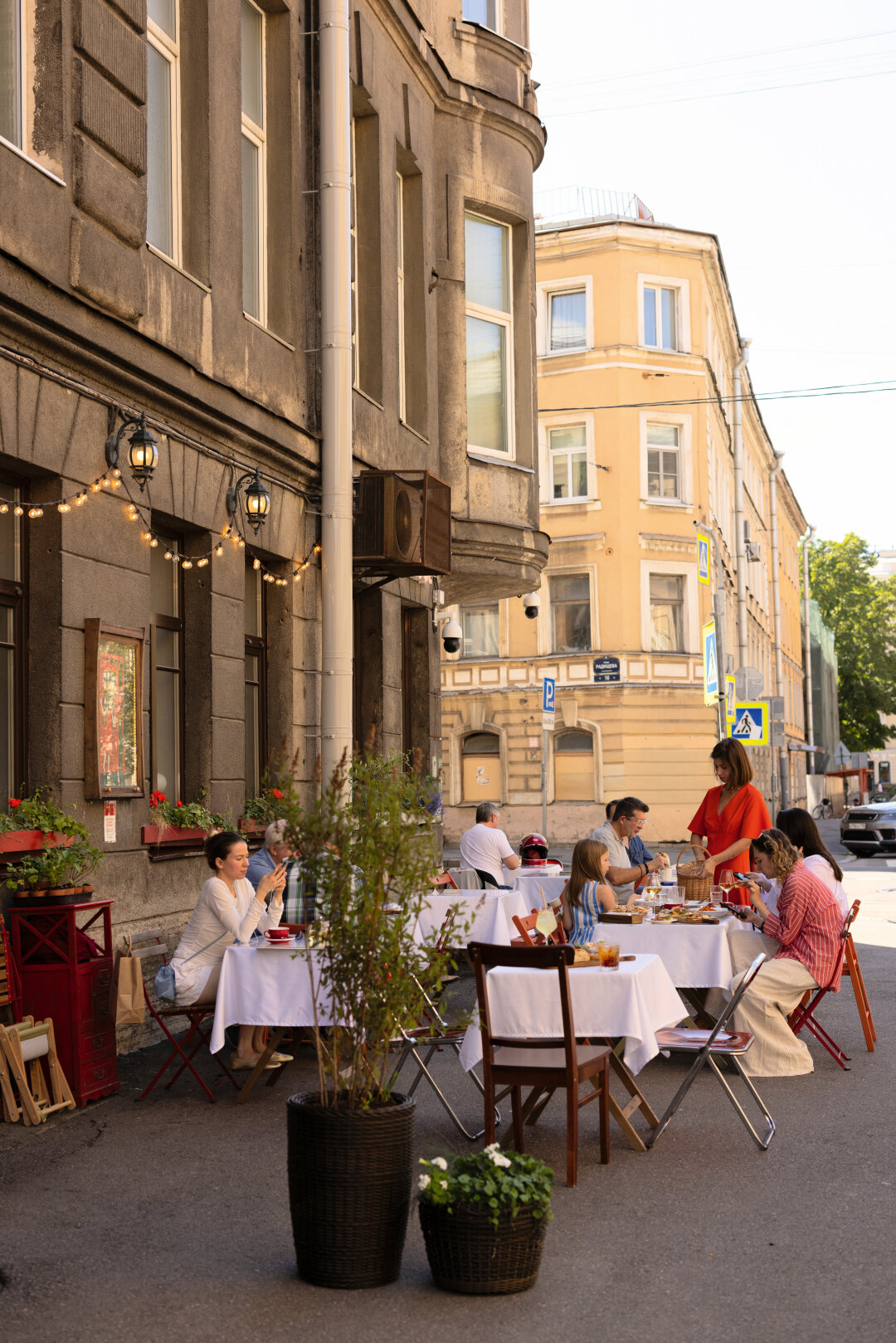 «Мои года—мое богатство»,—напевает великий советский хит Вахтанга Кикабидзе ресторан во дворе Дома композиторов. И будто и не было этих 17 (!) лет. На завтрак—пшенка; «большой равиоль» с уткой и песто из томатов—на обед; в шкафу—именные чашки (приносите свою!); в буфете—ягодные тарты, сорвавшие не одну диету. В летний сезон выигрывает тот, кто бронирует столик на улице и потягивает «Летнее логово» на игристом с маракуйей и анютиными глазками, пока младшее поколение парит на качелях и разыгрывает партию в гигантские шахматы.
