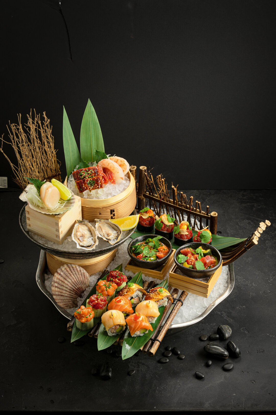 В этот вьюпойнт гастроимперии Ginza Project идут как на премьеру в Мариинский — нарядными: за драматургию — колоннада ангелов Исаакиевского, за декорации — интерьеры миланской архстудии Piuarch, известной сотрудничеством с Dolce&Gabbana, партии премьеров исполняют мурманский краб, сибас в соли и филе россини с фуа-гра, в кордебалете выходят миндальный торт с манго, кюве престиж и банановый джо со сладким хересом и травами.