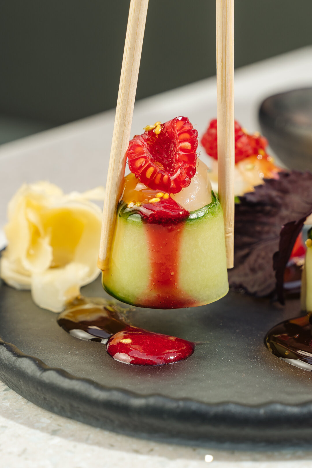 Шеф Вячеслав Западинский встречает открытие граффити-террасы, не стесняясь брать от ягодного сезона все: суши с гребешком коронует малиной, севиче из лангустина дополняет клубникой, а роллу «филадельфия» добавляет провокации черешней в соусе терияки. Также к лету обновилась коктейльная карта (черносмородиновый джин с лаймовой содовой подают в ванне с уточками) и появилось спешл-меню для четверолапых гостей.