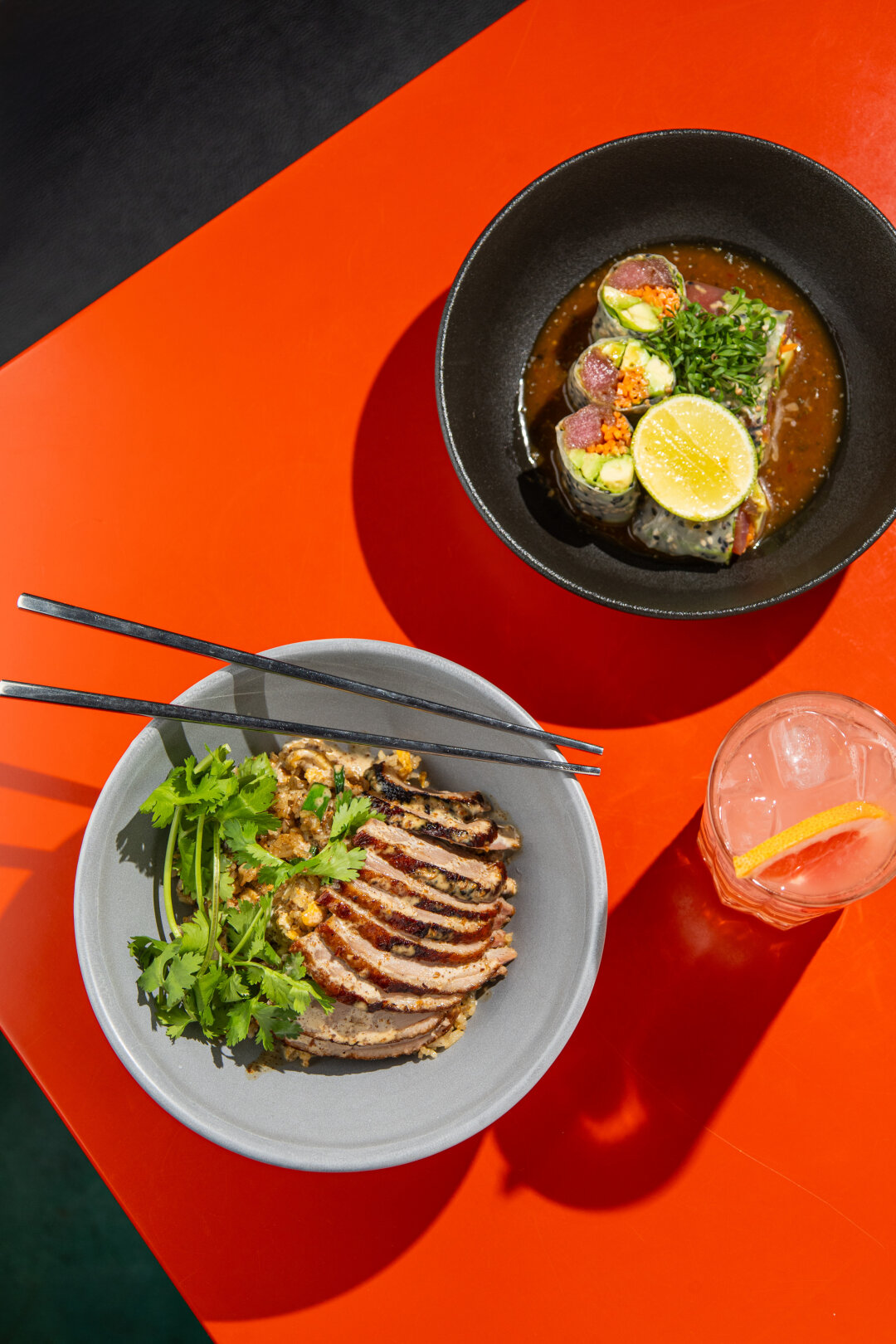 До 6 июля в ресторане Pong на Петроградке действует меню-коллаборация с телеграм-каналом «Китайский Петербург». Шеф-повар Павел Митрофанский и китаист Татьяна Карпова (читайте ее гид по трушным китайским кафе Петербурга!) придумали три блюда в стиле азиатский casual: ролл с маринованным тунцом в тонком рисовом тесте, рис с запеченной уткой по-гонконгски в ореховом соусе и лимонад с ревенем, розой и грейпфрутом.