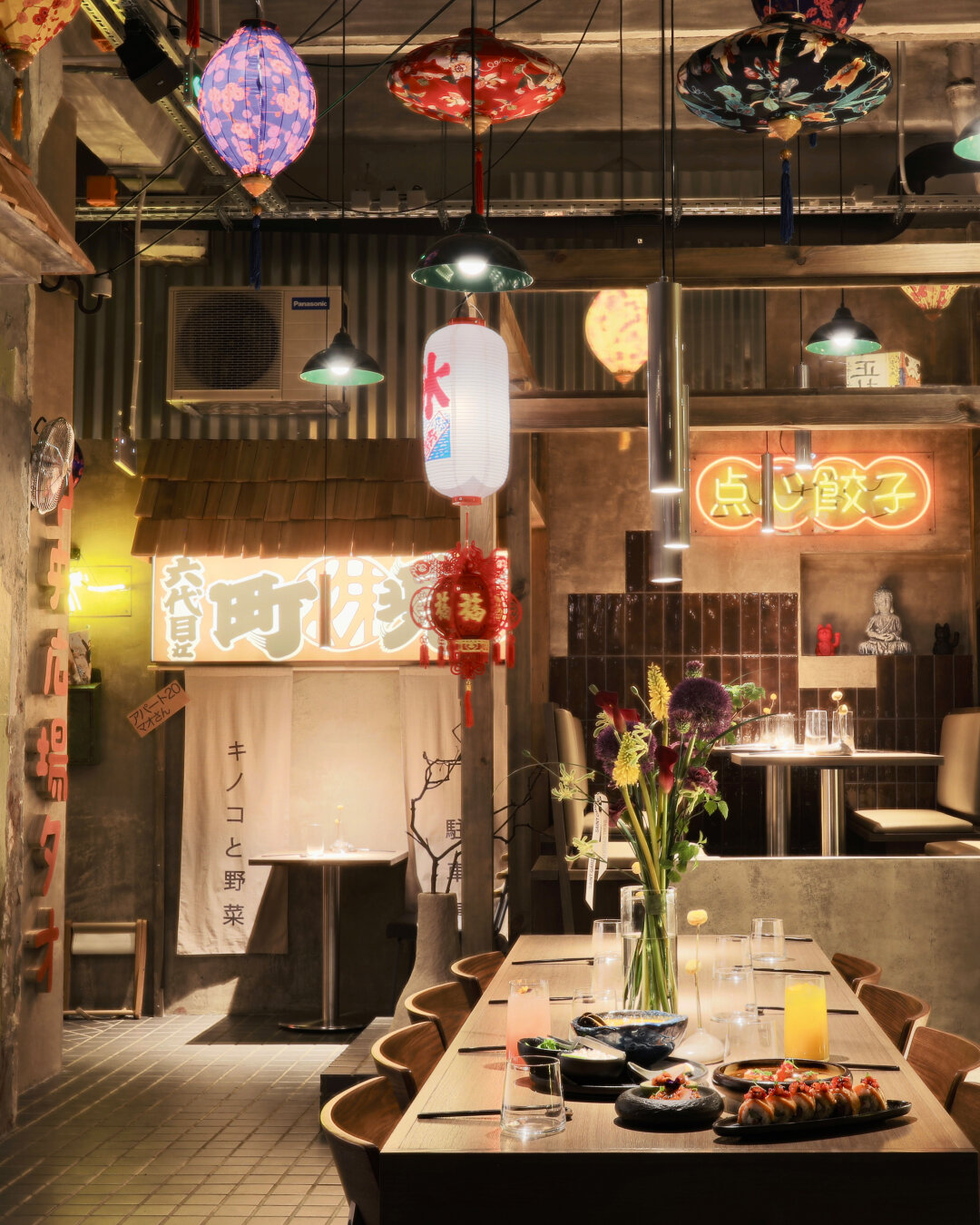Только посмотрите, такой красивый паназиатский ресторанчик ТАО от команды любимых бургерных «Бюро» работает прямо напротив входа в Ботанический сад. Над интерьером работали ребята из Room Design Büro: материализовали мистический азиатский квартал с залитыми неоном узкими улочками, бамбуковыми узорами, фонариками, китайской и японской графикой. В меню каждое блюдо промаркировано названием города, откуда оно прибыло: хрустящие баклажаны с муссом из угря — Пекин, сашими из тунца — Токио, фо бо — Ханой, королевский том ям с лангустинами — Бангкок, а ананасы кимчи или десерт «панакотик» — Сеул. Коктейльный маршрут построен барной командой Imbibe: по пути следования нас ждут негрони с соленой сливой, твист на «Пенициллин» с чаем лапсанг сушонг и пунш в стиле том ям из рома с кокосовым молоком.