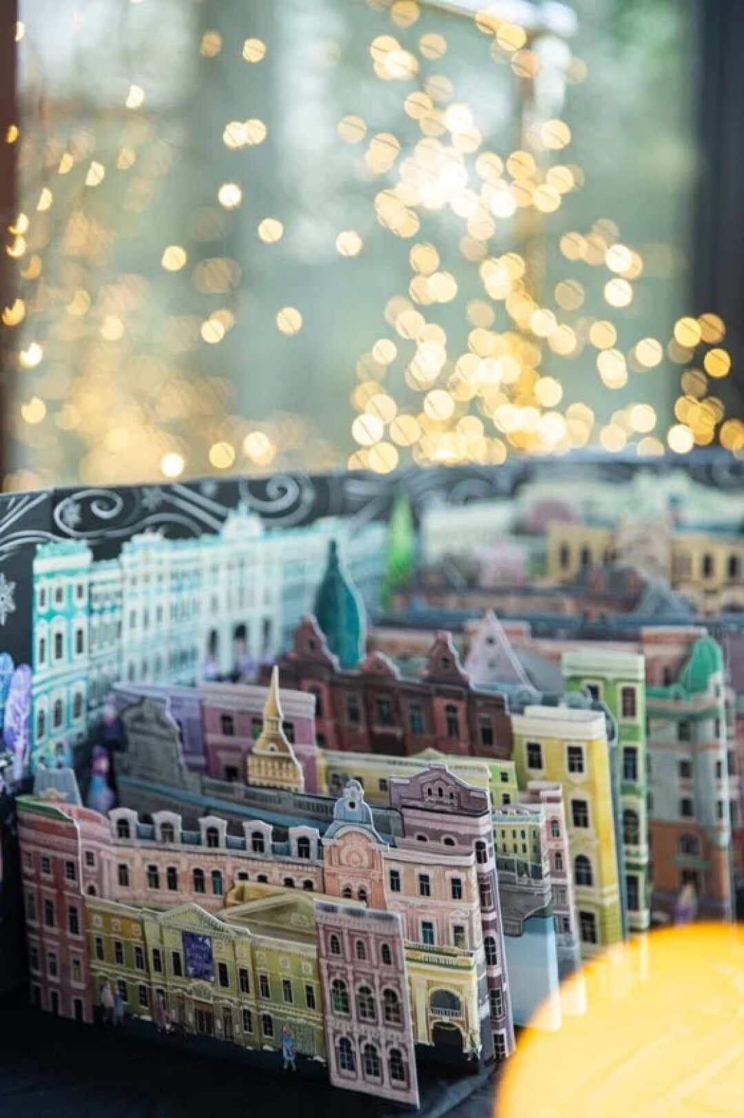 Это красиво! Адвент-календарь, внутри которого завернут целый Петербург. Огромная поп-ап развертка с шоколадом в каждом изгибе и брошюра с рассказами об архитектуре: всего 31 плитка на каждый день декабря, соответствующая своему зданию. Есть и классический горький из разных регионов, и шоколад с ладаном, сырный или свекольный. После праздников, когда закончатся сладости, останется панорама кварталов города.