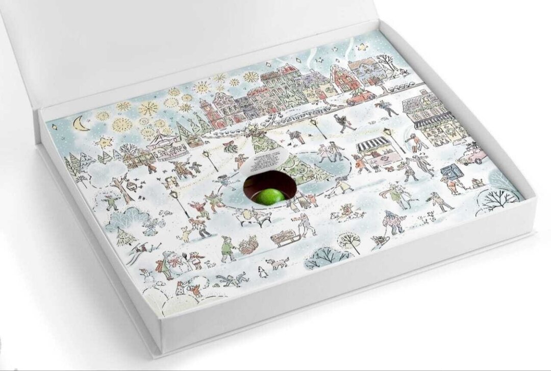 Команда знаменитой локальной шоколадной фабрики выпустила адвент-коробку с ангелами на дверцах. Здесь 24 окошка, внутри которых цветные кубики традиционного французского пралине с харизматичными вкусами: малина с розовым перцем, лаванда с черникой, молочный улун с миндальным печеньем или фисташка с базиликом.