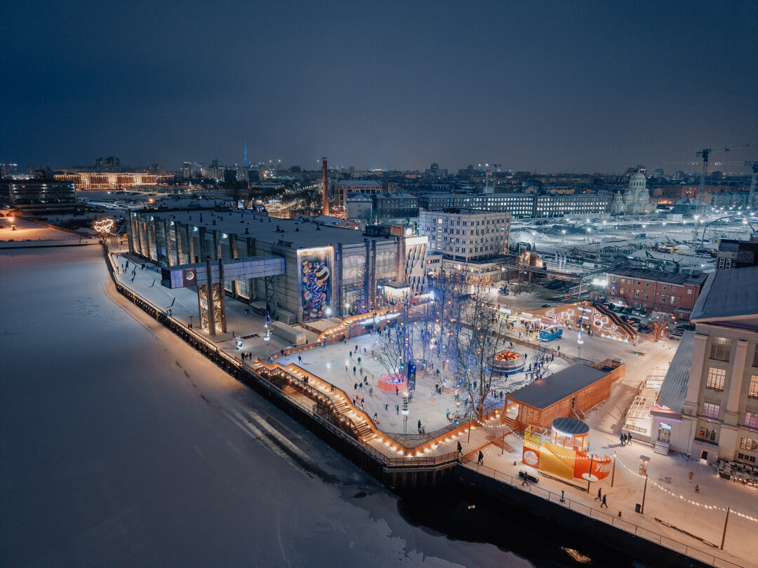 Во дворе здания «Бутылка» установили восьмиметровую елку и уличные очаги, 16 киосков с подарками, елочными игрушками, посудой и винтажными украшениями, а также едой и напитками — от пончиков с креветками и римской пиццы до шведских пирогов и пышек. С 1 января в Павильоне будут работать «Мастерские Деда Мороза», организованные Творческой мануфактурой «П.Т.Х.». В этом году программа мастер-классов посвящена свету в широком смысле слова — дети от 6 лет под руководством опытных помощников Деда Мороза научатся делать новогодние украшения, фонарики, открытки и даже волшебные палочки. Участие в «Мастерских» бесплатное, предварительная запись не требуется. В «Моей школе», которая находится в Доме Коменданта, пройдут зимние лагеря по кино, музыке и театру, а также новогодние мастер-классы.