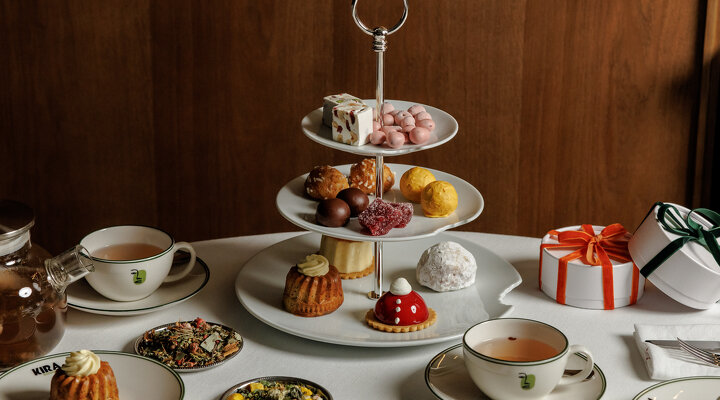 Вот такое красивое чаепитие можно устроить в ресторане Kira до 11 января, с 12:00 до 16:00. Это средиземноморский чайный микс со специями и набор рождественских десертов ручной работы. Каждая церемония сопровождается подарком — хрустальной ёлочной игрушкой в форме конфеты, созданной художницей Гусевского хрустального завода Валерией Симоновой.