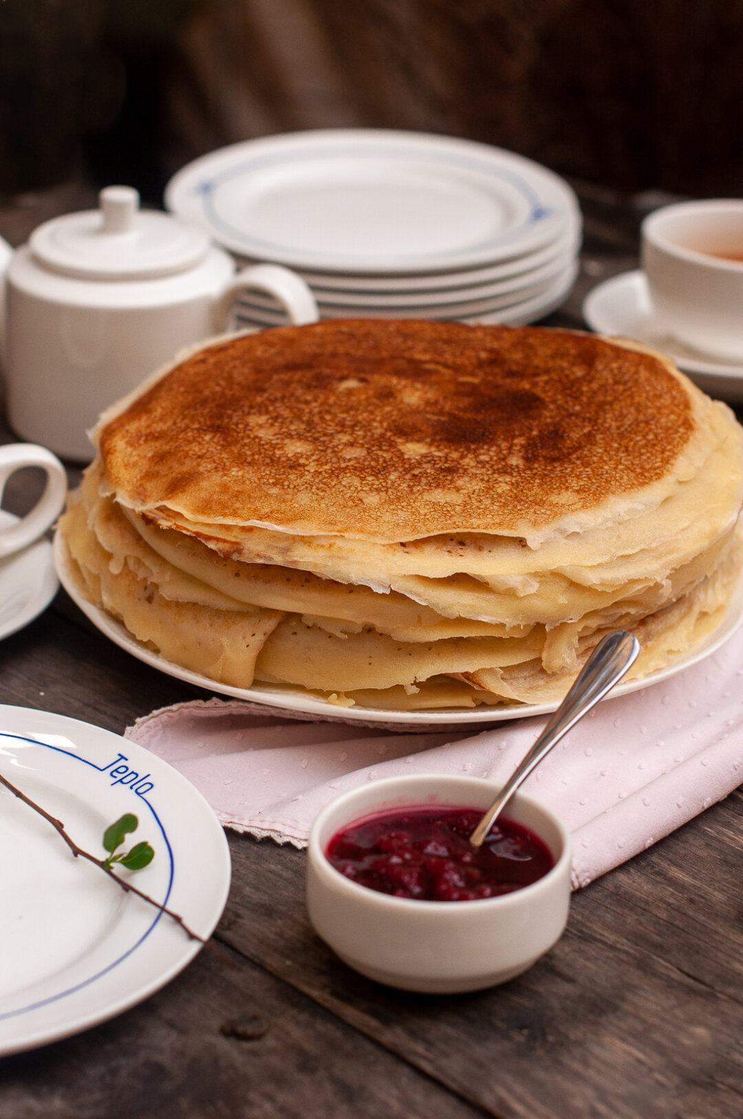 О нашем праздничном столе дома позаботился Teplo: в их кулинарии можно заказать исполинскую стопку блинов — 50 штук привезут в комплекте с баночкой идеального домашнего варенья. А в самом ресторане можно попробовать хрустящий блин в панировке с мортаделлой, соусом дорблю и кремом из печеного перца или мини-блинчики с грушей в мисо-карамели и кремом тирамису.