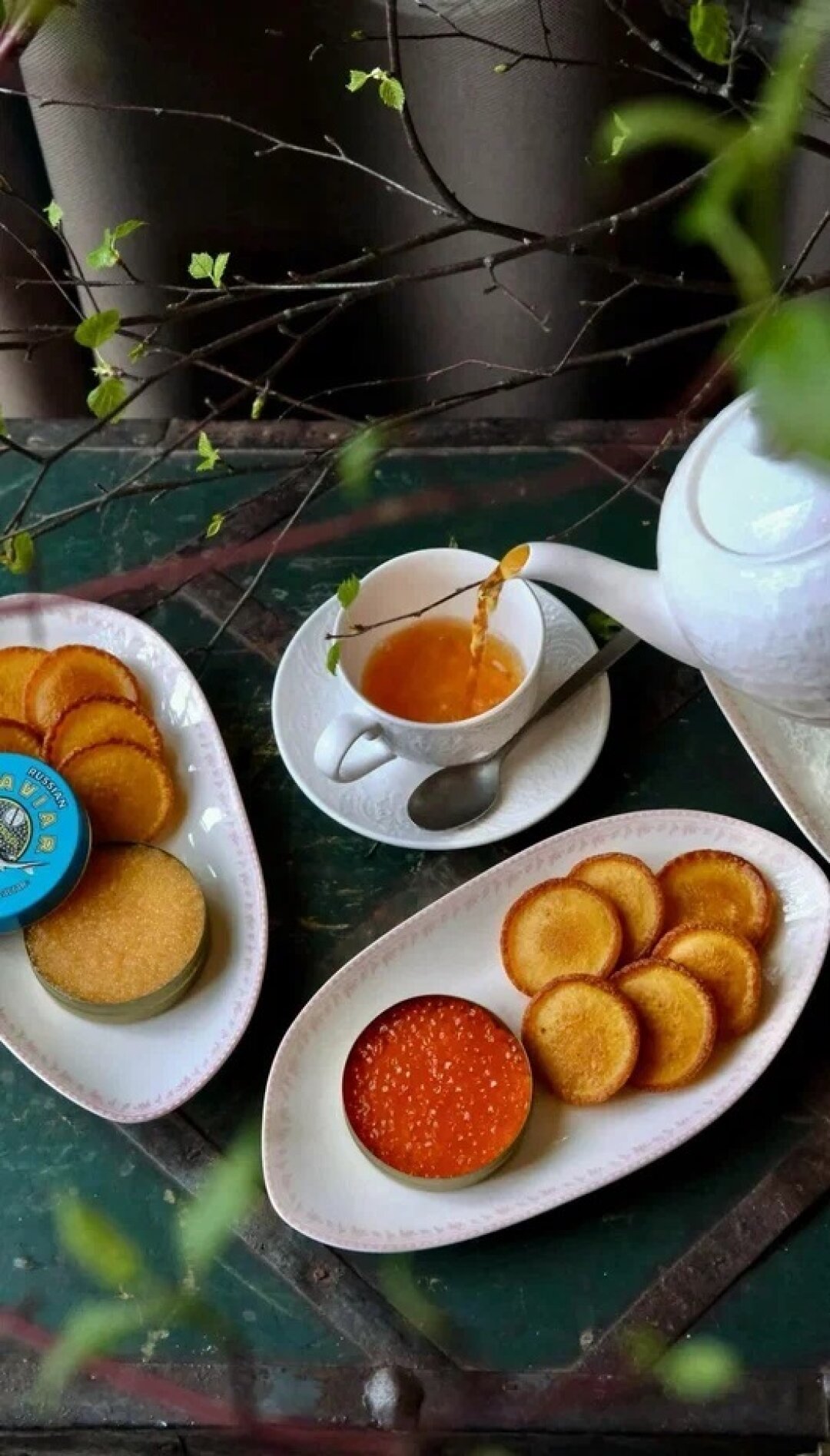 А бар Xander 21 и 22 февраля предложит царские блины с тремя видами икры: красной, осетровой и белужьей. Подают их со сливочным сыром и листиком свежей мяты.