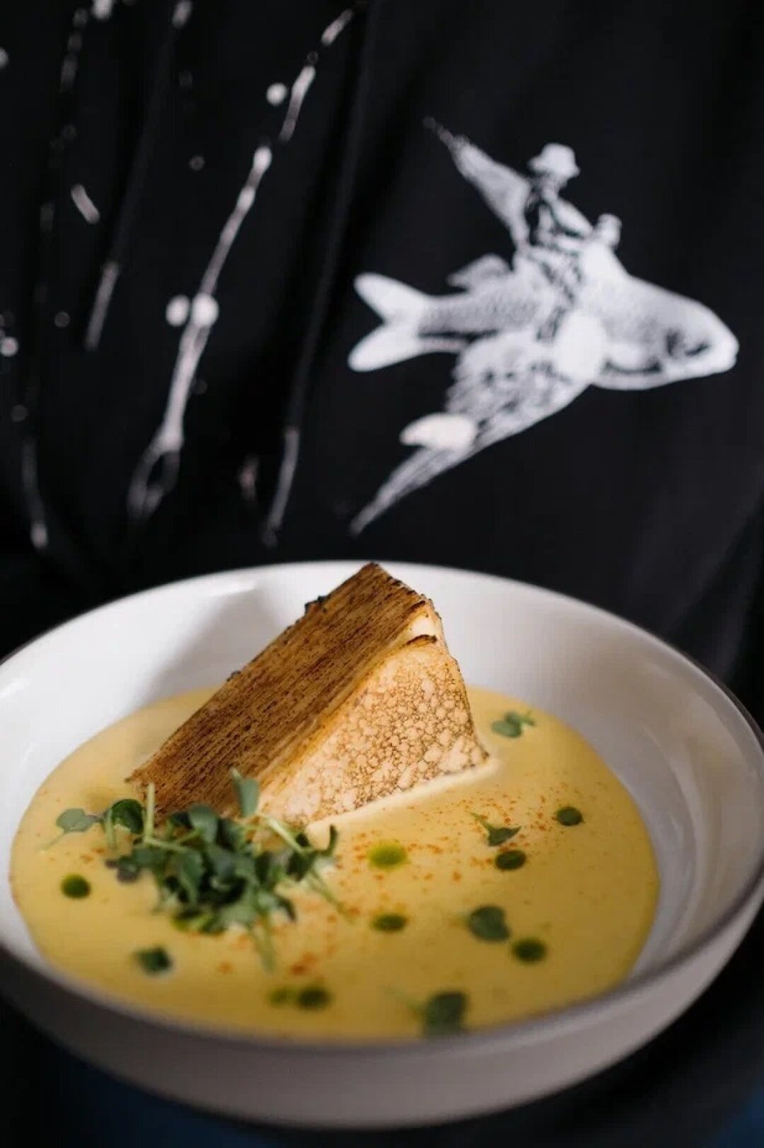 «Мечтатели» пекут блины с утра и до вечера, как и положено в эту неделю. В этом году шеф Виталий Папп решил подружить британскую основательность с северной эстетикой, союз окрестили «британским нео-нордиком». Итак, встречаем бургиньон-блины со щечками, миксом грибов и демиглясом из кваса и блинный пирог с копченым лососем.
