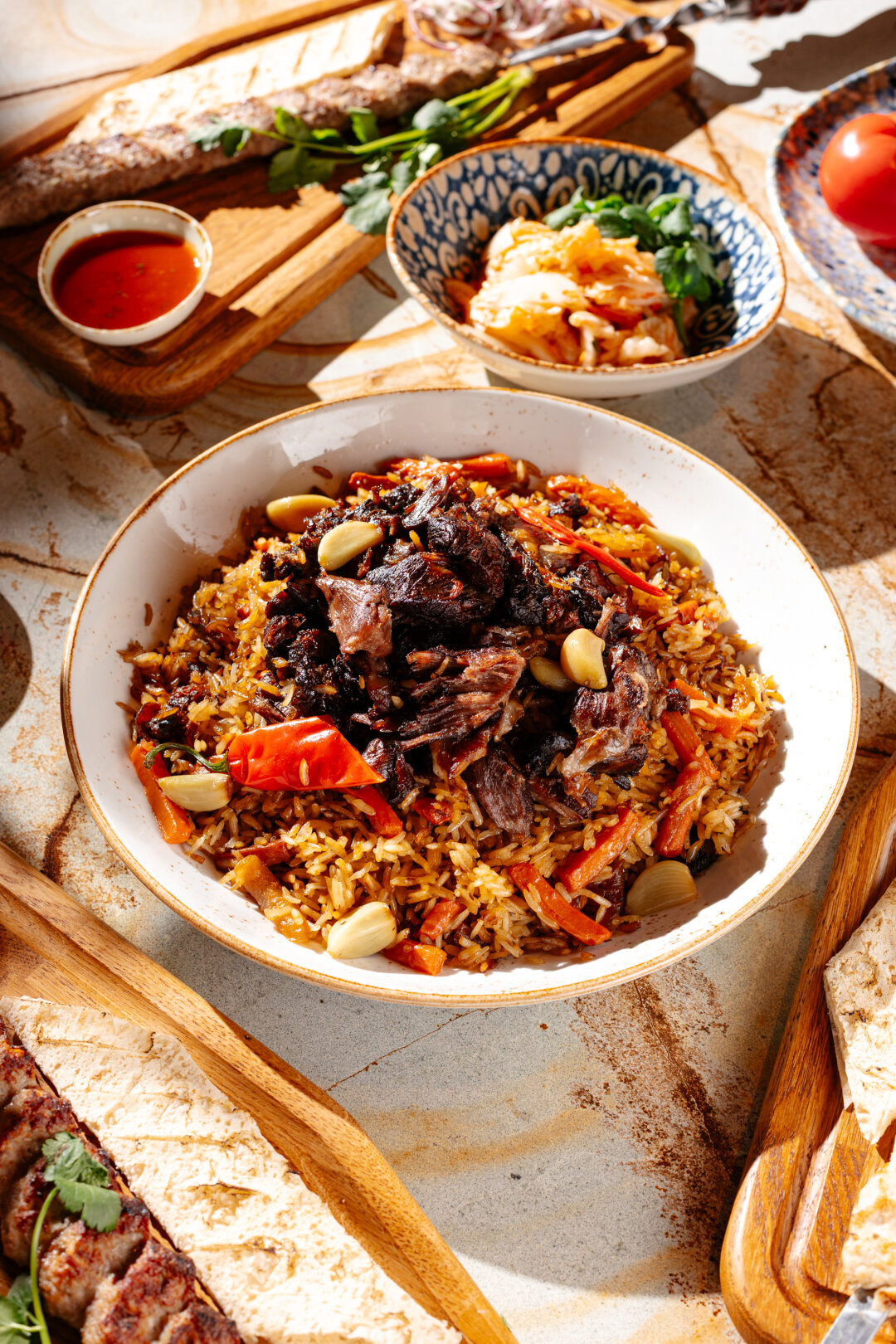 Каждому — по казану! Ресторан восточной кухни «Чабрец» празднует День плова — по этому поводу 22 и 23 февраля (во всех ресторанах сети) бренд-шеф Анатолий Цай будет кормить праздничным бухарским пловом: с говядиной, сушеным виноградом и сладкой красной морковью. Ингредиенты в нем не обжариваются классическим способом, а поливаются раскаленным маслом. Запивают такой плов чаем — найти свой идеальный пэйринг можно в новом чайном гиде.
