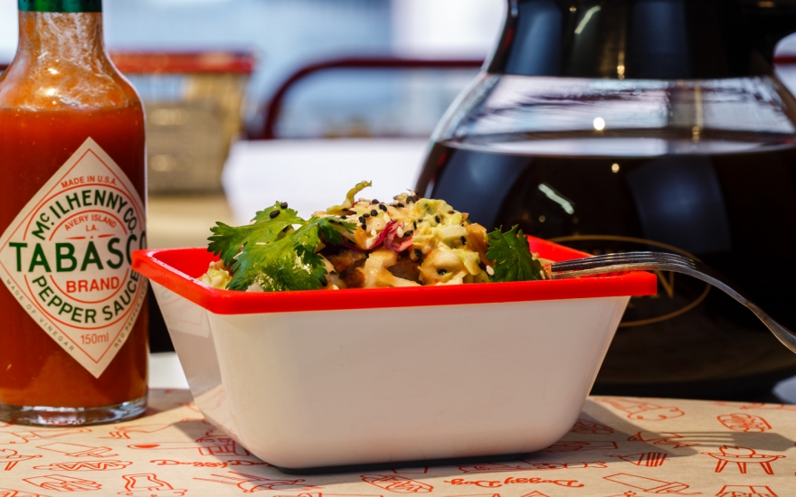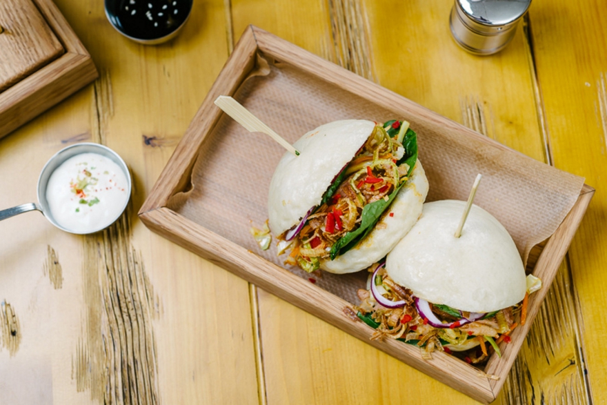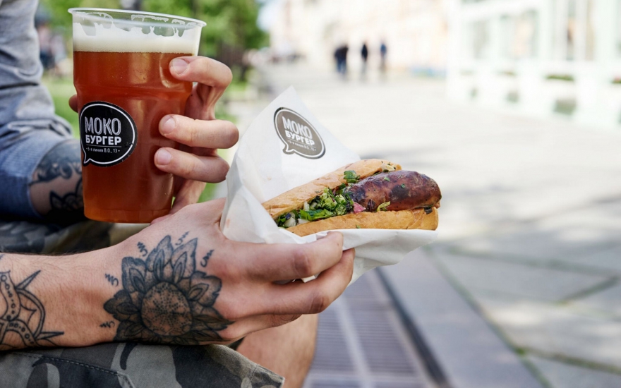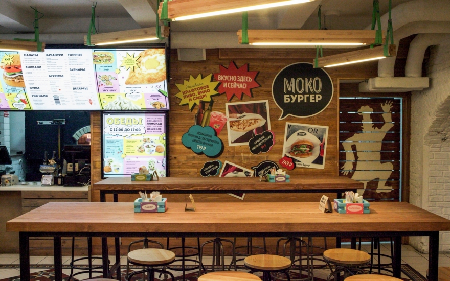 Ресторанная группа Ginza Project – давно эксперт в кавказской кухне, у нее множество профильных заведений. Соединив его с демократичным направлением стритфуда, в которым холдинг дебютировал проектом Obed Bufet, придумался «Моко-бургер». В заглавное блюдо — будь оно с бараньей котлетой или вегетарианский с фалафелем — добавляется грузинский соус сацебели, замешанный с помидорами, чесноком и базиликом. С хот-догами в меню соседствуют хинкали, слоеные пеновани — вид хачапури с сулугуни, шаверма в лаваше и сырники с мацони на завтрак.