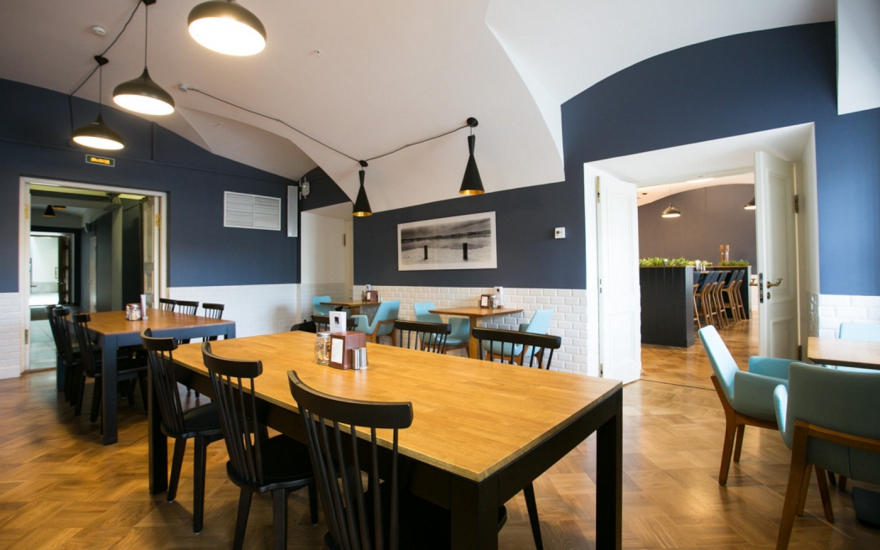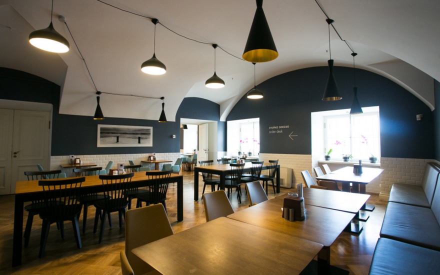 Отличные рестораны и сувенирные магазины при музеях для самих арт-институтов своего рода предмет особой гордости. Наш родной и один из самых посещаемых музеев в мире тоже обзавелся прекрасным современным кафе — «недорогое, качественное и симпатичное», как определил его издатель Борис Пиотровский. Симпатичное — потому что студия Rich Propellers делала интерьер с оглядкой на архитектурный проект Главного штаба братьев Явейнов, то есть все строго и с достоинством. Недорогое — потому что средний чек не превосходит пятисот рублей. А качественное — потому как местный бургер с фермерской говядиной вполне может составить конкуренцию лучшим образцам этого жанра в Петербурге. Вок, том ям, пельмени, коул слоу, ванильные эклеры — меню в кафе по изобилию напоминают натюрморты Франса Снайдерса, но, в отличие от творчества малых голландцев, его можно поедать не только глазами.