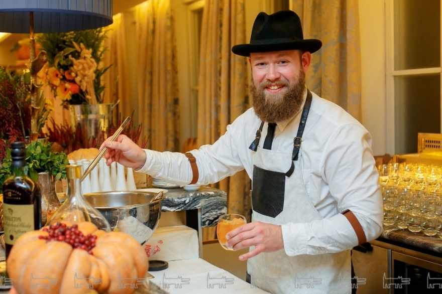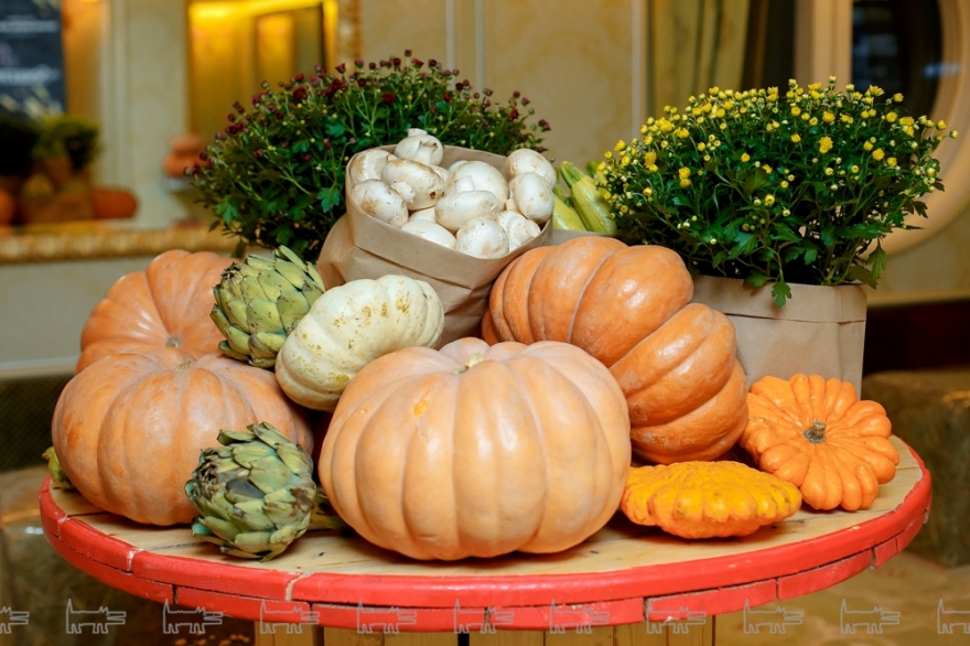 Темой главного гастрономического события Петербурга стал осенний фермерский маркет. Декоратором выступал дизайнер Максим Лангуев, который оформил церемонию цветами, овощами и фруктами, превратив роскошный просторный зал Гранд Отеля Европа в торговый ряды маркета.