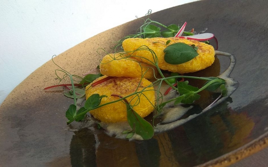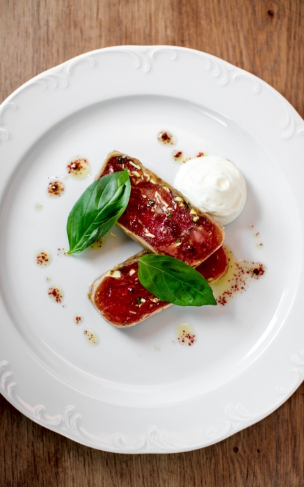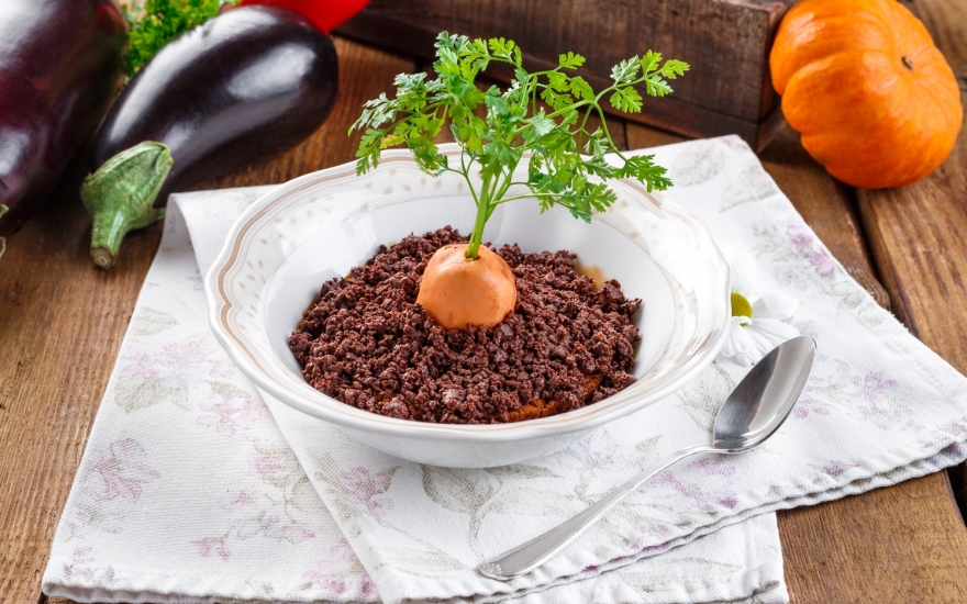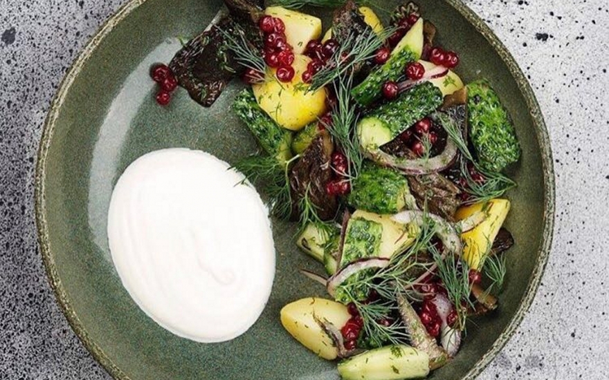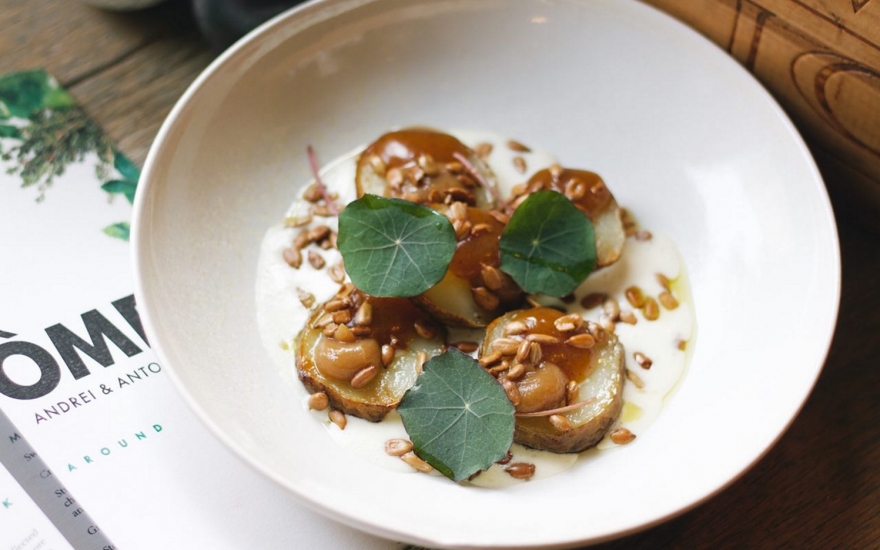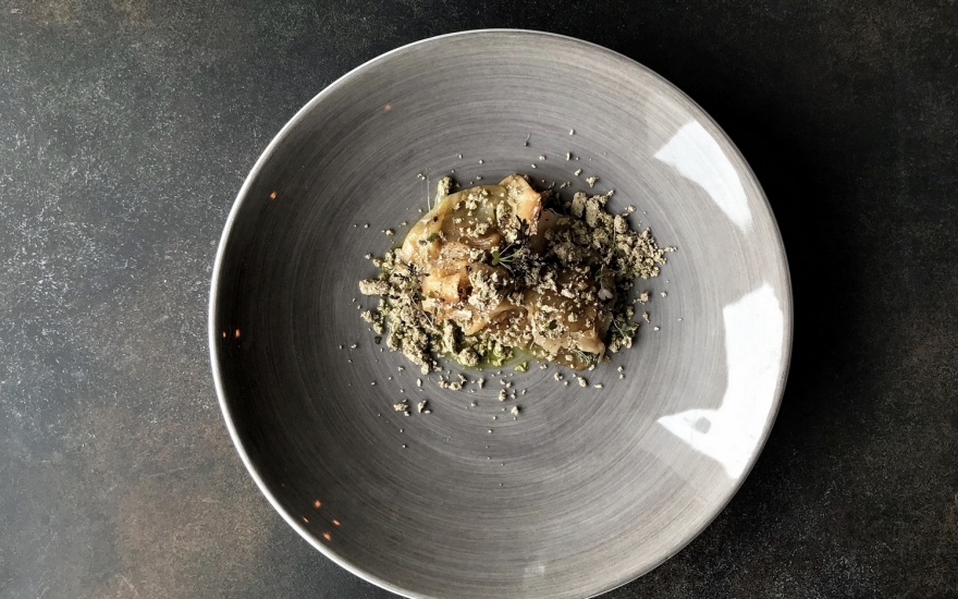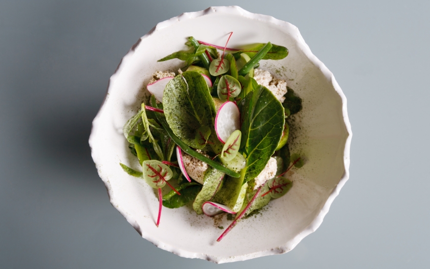 У шефа и ресторатора Екатерины Бокучавы вегетарианская еда в меню a la carte попадается через раз. Тартар из сырой свёклы с травами и зерновой горчицей переехал из соседнего «Места», где он являлся хитом восемь лет подряд: тут его дополнили отваренной свеклой, двумя видами горчицы, лимонным соком, оливковым маслом и травами.