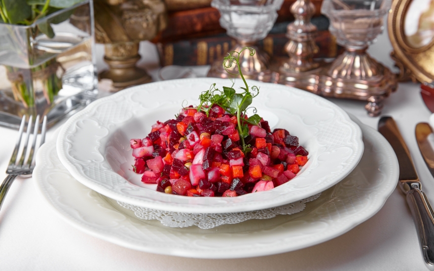 В пост ресторан «Царь», как и всегда, празднует старую добрую классику — с оглядкой на современное. В том числе, дают печеную свеклу с вялеными абрикосами и лесным орехом с заправкой из постного майонеза и гранатовым соусом; зернистую овощную икру на ржаных хлебцах; оливье, куда вместо мяса интегрированы маринованные боровики; винегрет из печеных овощей и духмяным маслом. На сладкое яблочный кекс — без дрожжей, но с фисташками и с кремом из печеного яблока.