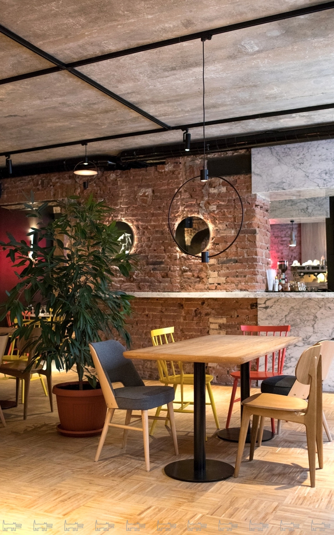 Чинные семейные обеды с жареным камамбером и краб-болтами, брейнстормы со стритфудом, лекции с мини-пончиками, танцы с барбекю – в трехэтажном пространстве помещаются все и всё. Обеденная карта конкурирует с котельной, так что и лекции, и танцы заканчиваются одинаково: у барной стойки.