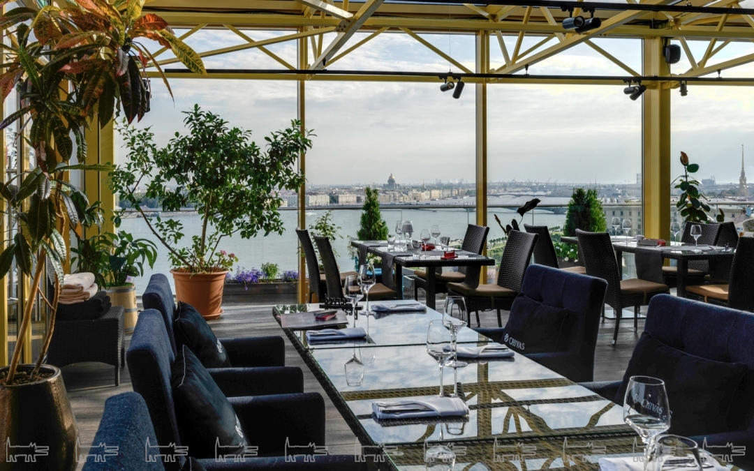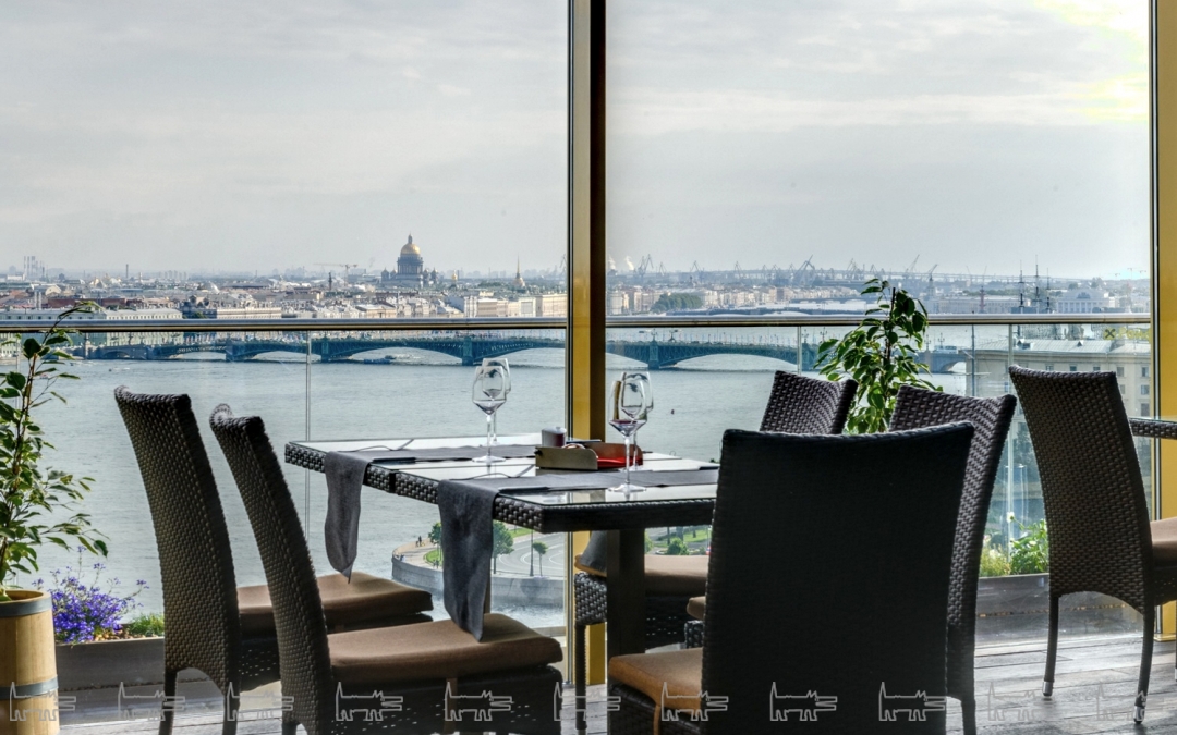 В активе заведения на последнем этаже гостиницы «Санкт-Петербург» — лучший вид на город, две масштабные террасы и авторская кухня стремительно развивающегося дарования Никиты Сечина. Ему равно удаются как экспериментальный карамелизованный биск, так и классические борщ и пирожное «картошка».