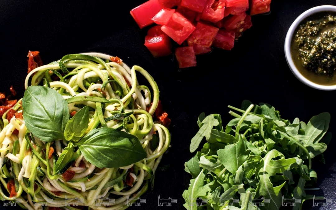 В старейшем вегетарианском кафе готовят сыроедческую пасту на сто процентов состоящую из полезных продуктов: здесь нет ни грамма муки, а только цукини, руккола, вяленые томаты и несколько капель лимонного сока. Соус песто из семян конопли, базилика оливкового масла и кубики бакинских помидоров подаются отдельно.