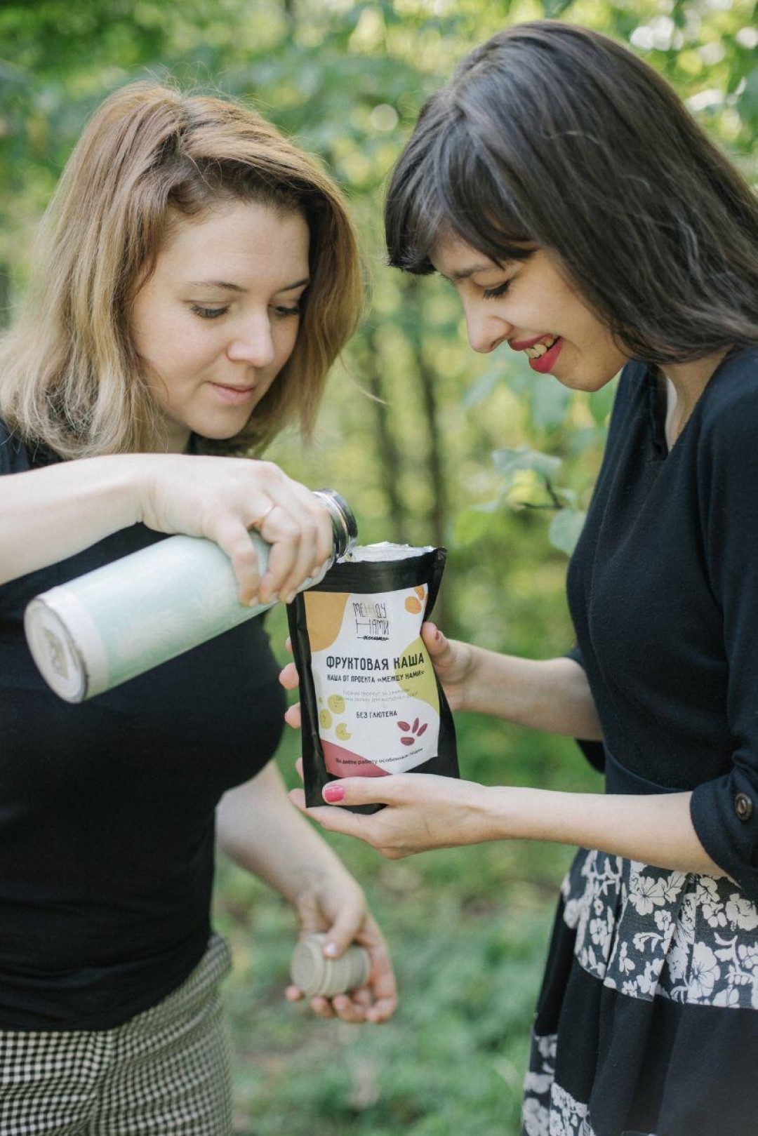 Мы определились с концепцией и узнали у знакомых поваров, какие ингредиенты можно заваривать в кипятке. Накупили их и несколько дней смешивали, записывая удачные сочетания. Выбрали два варианта: один — бананы, финики, курага, другой — кускус с овощами. Решили, что ложка должна быть внутри, чтобы кашу можно было заварить где угодно. Нашли знакомого дизайнера, который смог сделать этикетки — сначала просто писали название и состав маркером на упаковке. Продавать каши на ярмарках начали в декабре 2018 года.