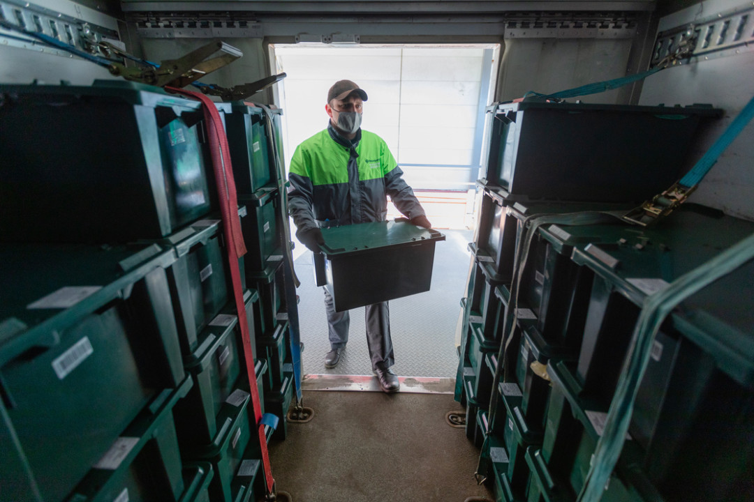 У нас есть так называемые дарксторы — это большие магазины без покупателей, в которых специалисты размещают и собирают товары. Что-то среднее между складом и гипермаркетом без клиентов. Площади наших самых больших дарксторов в Вешках и Видном составляет порядка 18 тысяч квадратных метров каждый. Внутри есть разные зоны хранения. Весь даркстор сосредоточен на эффективном сборе заказа и серьезном контроле качества. Каждый заказ собирается сотрудником, у которого есть специальный терминал — девайс, с помощью которого сканируется товар, и мы можем отслеживать остатки всех позиций, а также контролировать свежесть продуктов. Затем заказ загружается в корзину и водитель-экспедитор везет его покупателю в нашей специальной машине с холодильной установкой.