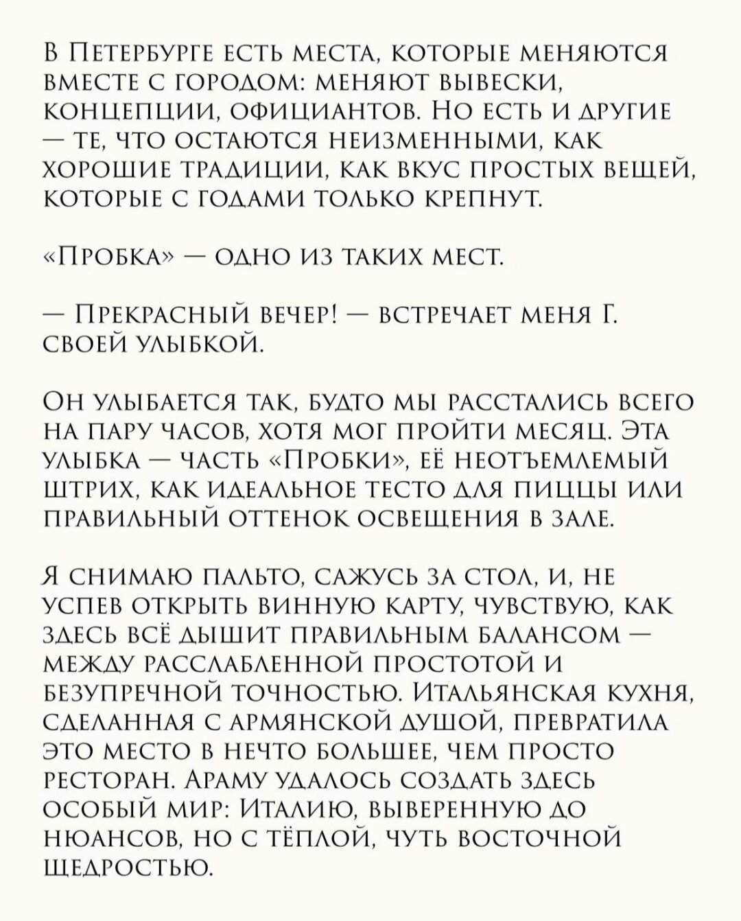 Мне кажется, это отдушина и для меня, и для людей, которые блог читают. Всем уже поднадоели напыщенные обзоры на гастроточки. Блог — это способ говорить с миром. Тут речь не о лайках и охватах, а чтобы человек, который прочитает мой пост, на секунду остановился и подумал: «Это ведь и про меня тоже!»