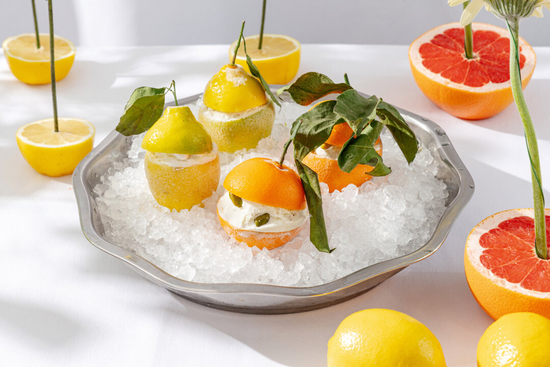 Пока для «Ветра» я успела сделать только десертную карту для греческой поп-ап-террасы. Снова моя любимая Эллада! Мороженое на греческом йогурте я подаю в апельсине на льду с апельсиновым же мармеладом и изумрудной фисташкой. В тесто для традиционного пирога портокалопиты идет розмарин и оливковое масло с острова Крит: обильно поливаю его апельсиновым сиропом для максимальной сочности, а подаю с кумкватом и легким йогуртовым кремом».